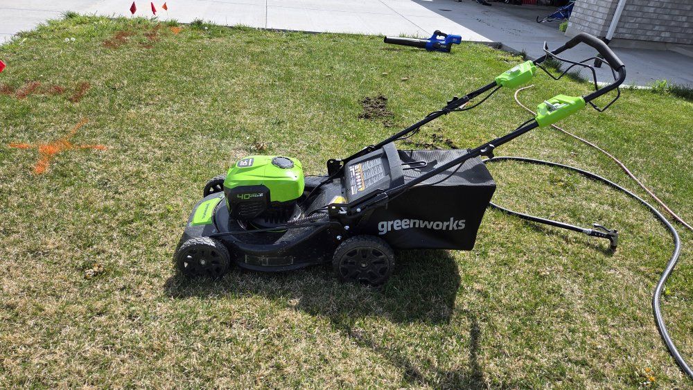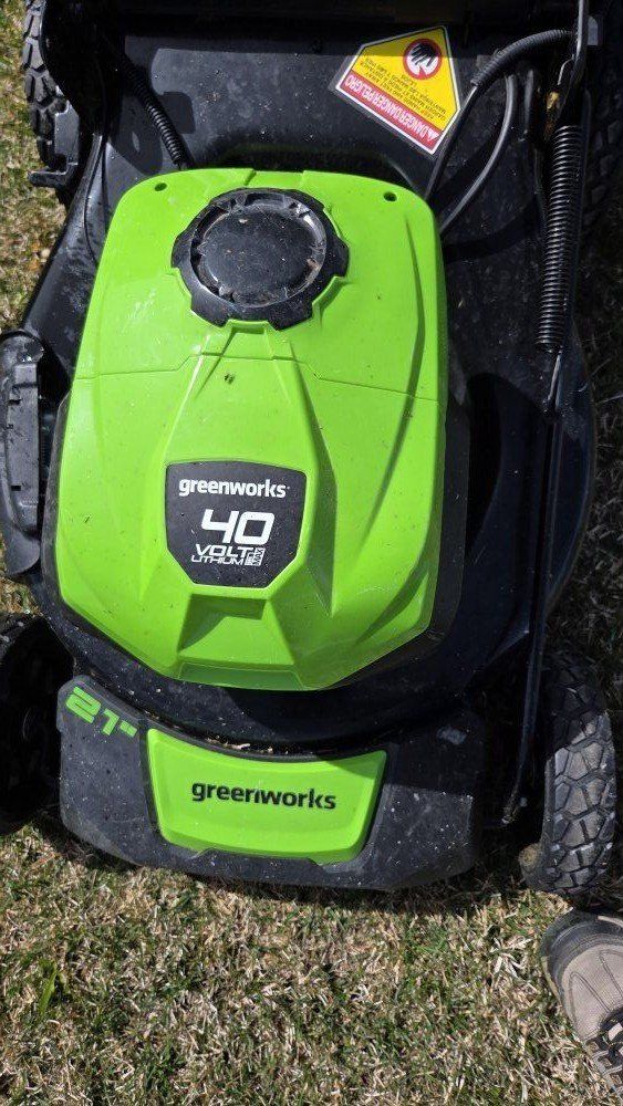Greenworks 21” 40V Brushless Lawn Mower – Like New Selling a Greenworks 21” 40V lithium-ion brushless mower in excellent condition. Only used for one season, runs perfectly with no issues. Features: 21” cutting deck – great for small to medium yards Brushless motor – quieter, longer lifespan, and more power 40V battery system (compatible with other Greenworks tools) Easy push start (no gas, oil, or maintenance) Lightweight and easy to maneuver Includes grass collection bag