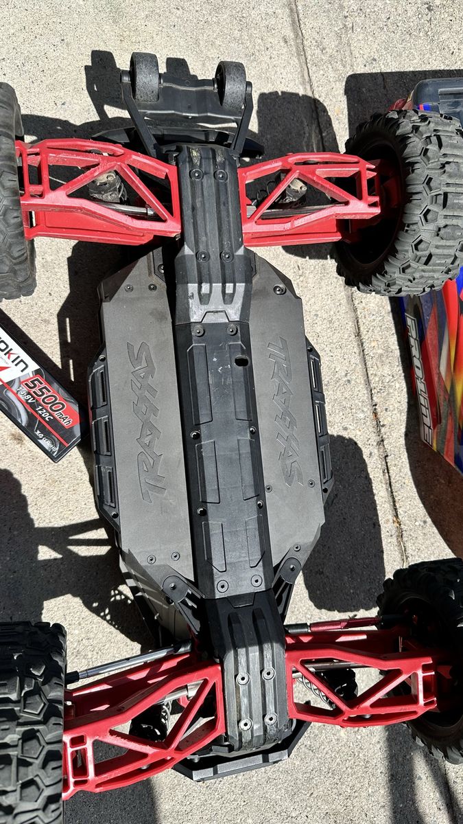 Selling one of my Traxxas WideMaxx v2 bashers. Has a upgraded Hobbywing Maxx 8 esc with a hobbywing motor both sensored. It has upgraded proline shocks, matching red a arms upgraded drivelines, upgraded aluminum steering crankshafts and a some links are also aluminum. Has been run very little. Send me a message if you have any questions. Thank you