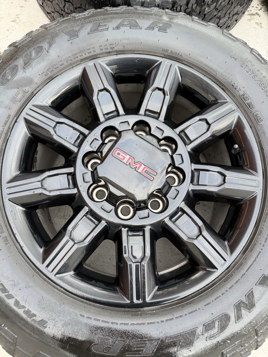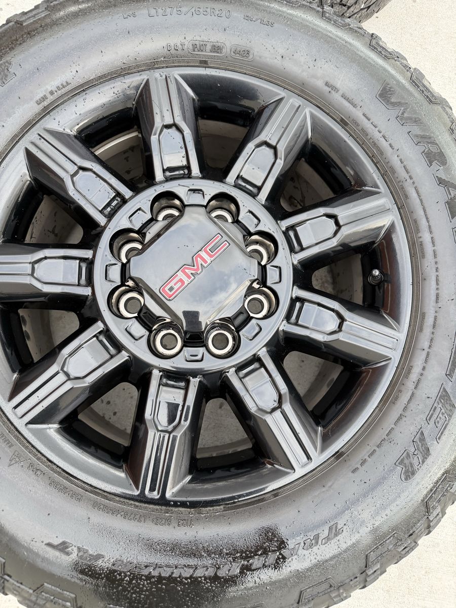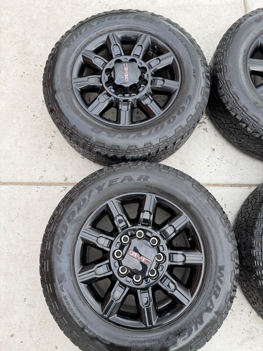 Selling my 2025 gmc at4 wheels and tires in good condition tires are 275/65r20 Goodyear wrangler trail runner load range E 10ply