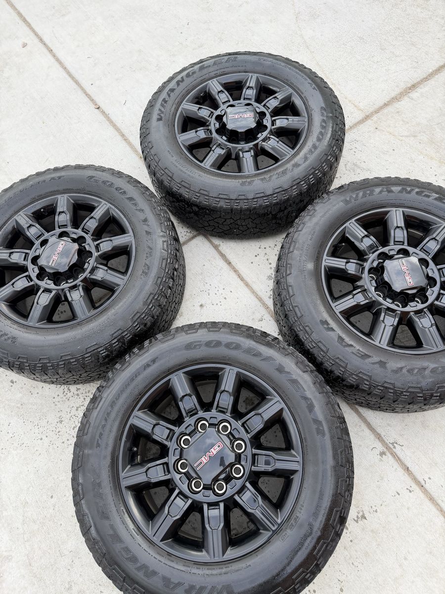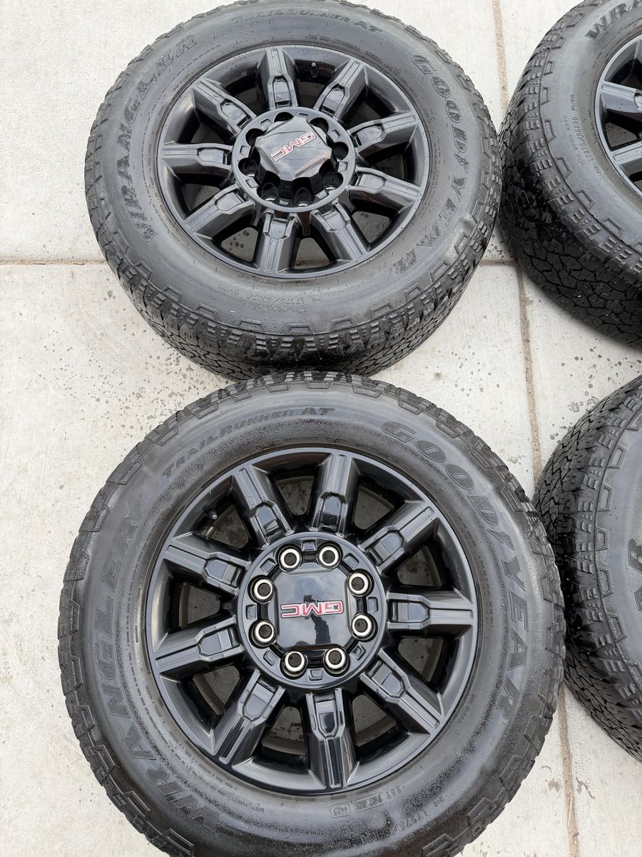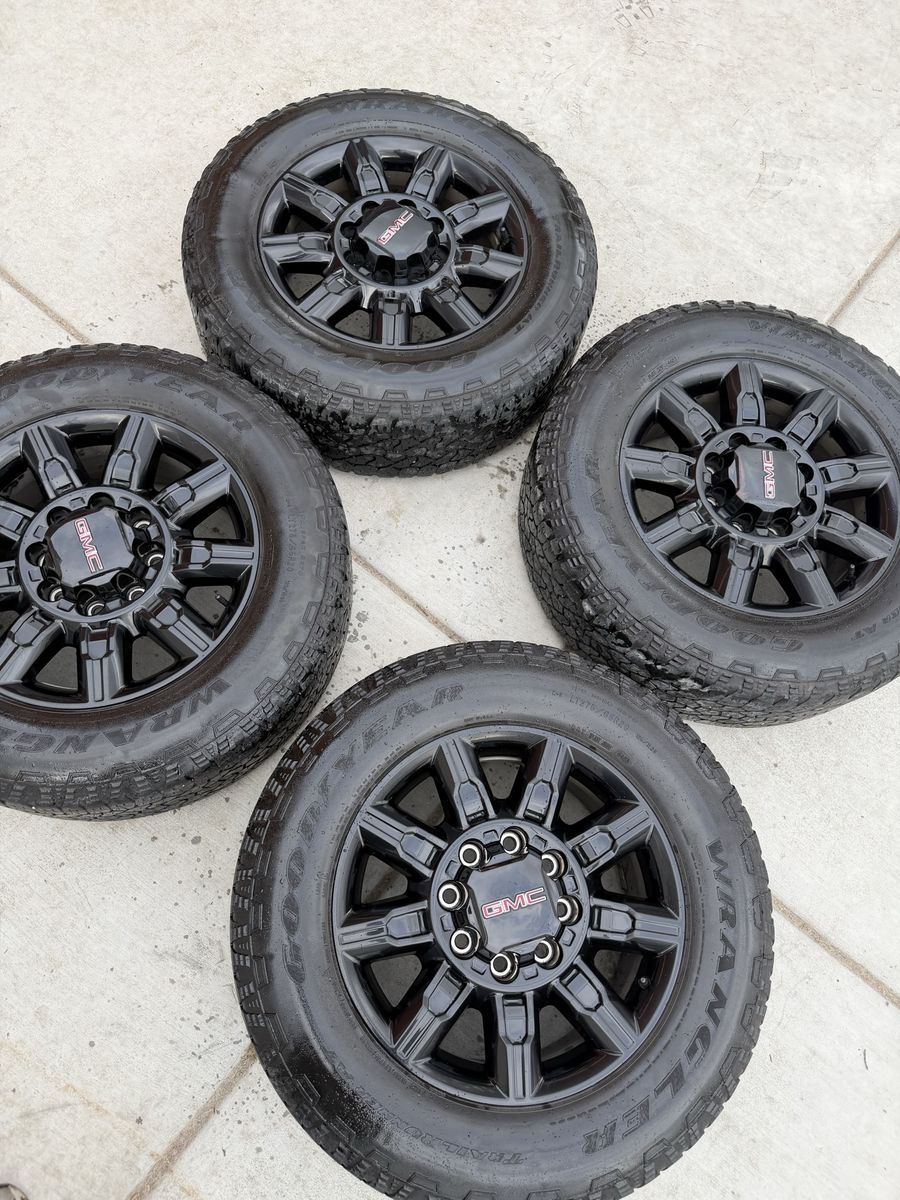 Selling my 2025 gmc at4 wheels and tires in good condition tires are 275/65r20 Goodyear wrangler trail runner load range E 10ply