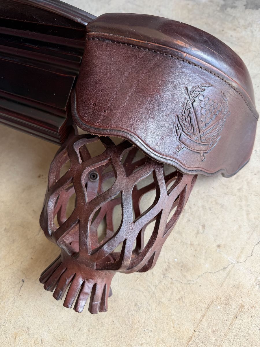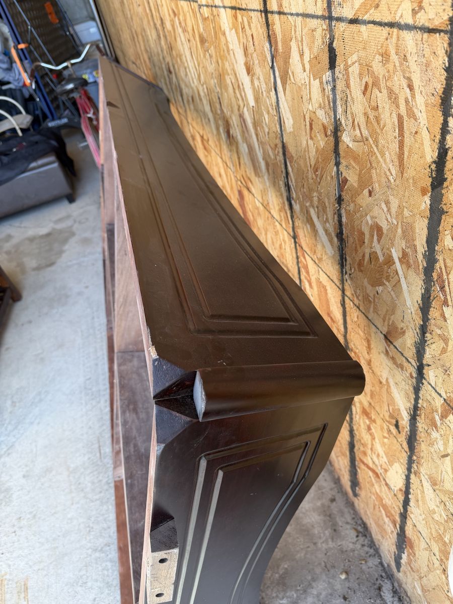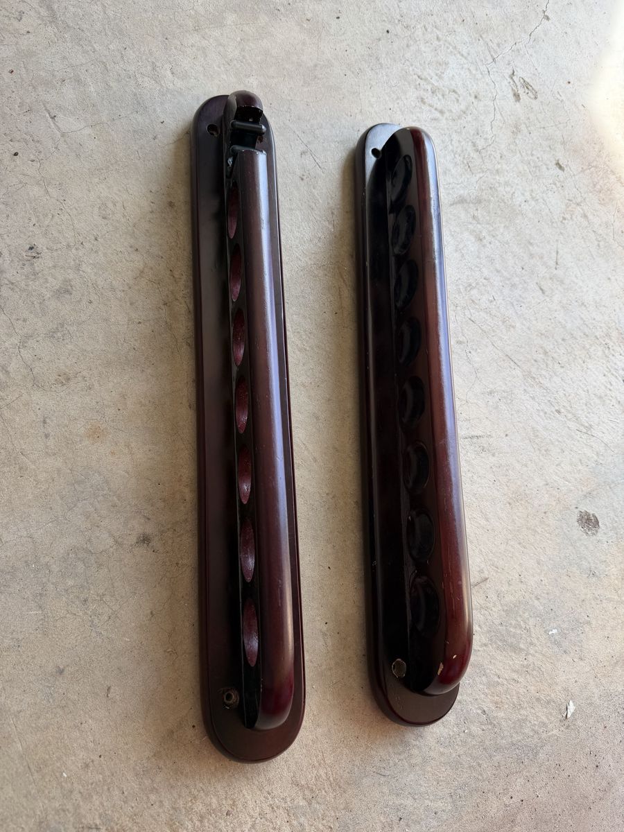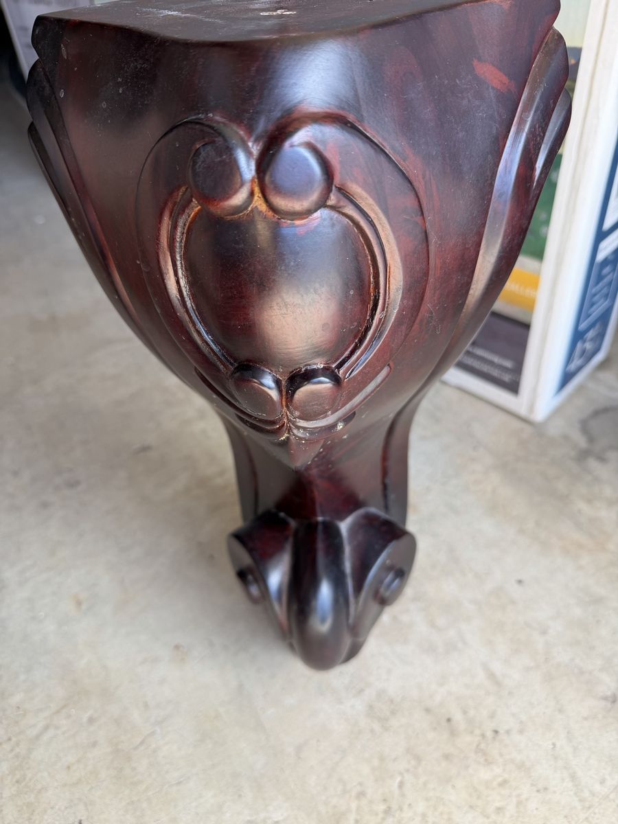 ApplePayPool table. Billiard table. It is disassembled. Real wood. Dark maroon stained wood with tan felt. Comes with everything you need…6 cues, cue bridge, cue wall mount, balls, etc. This is a high end pool table. Good quality.