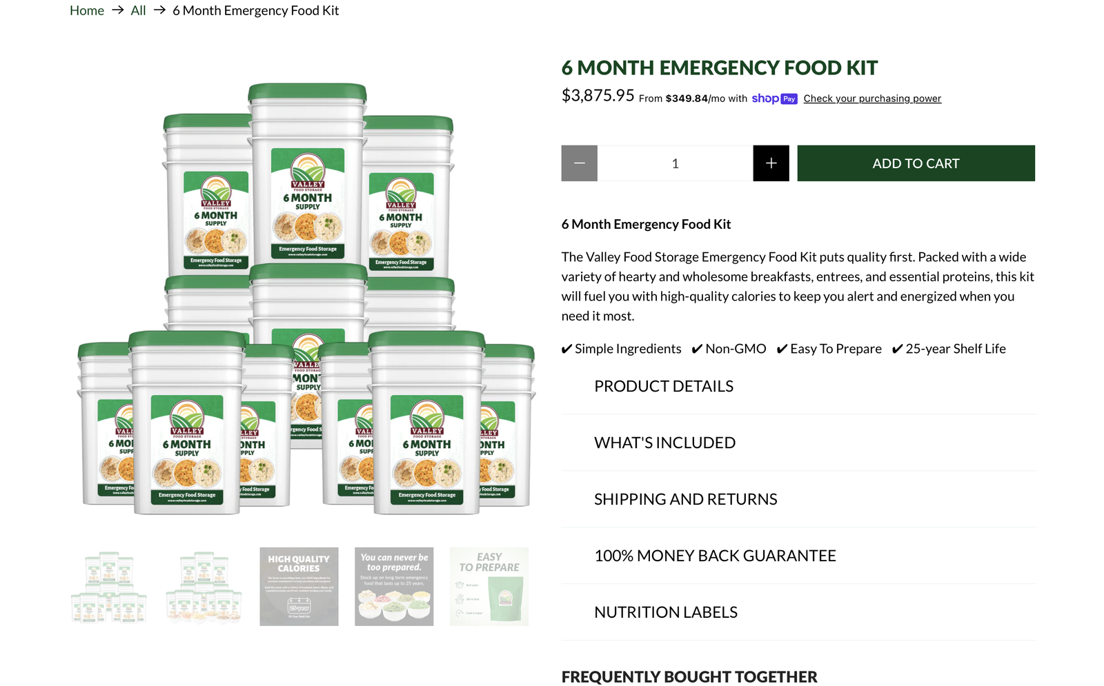 VenmoThis is a 6 month supply Emergency Food Kit from Valley Food Storage. I have 12 boxes of 1 month supply kits. I know that adds up to 12 month supply, but I know I only bought a 6 month supply... These kits have a 25 year shelf life and they were purchased in 2021. I paid over $2500.00 (Now the cost has almost doubled). Get a great deal!