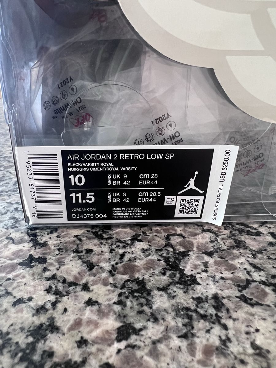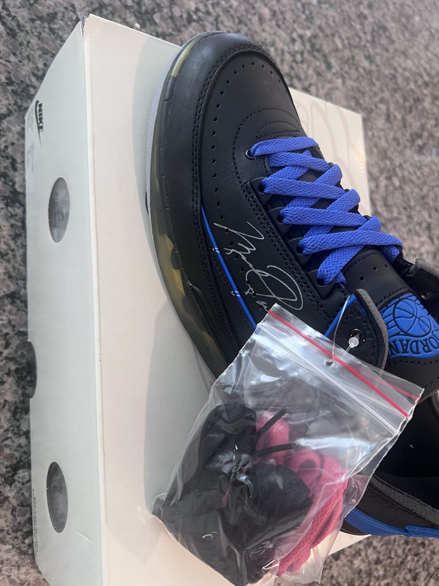 VenmoAir Jordan 2 Retro Low SP Off-White Black Blue — a super clean and highly sought-after collaboration between Jordan Brand and Off-White. Colorway: Black / Varsity Royal / White Condition: DS. Brand New never tried on. Size: Size 10 100% Authentic Comes with original box, laces, and accessories These feature Off-White’s signature deconstructed design, premium materials, and unique detailing that make them stand out from standard Jordan releases. Perfect for collectors or anyone looking to elevate their sneaker game. Pick up in American Fork $400