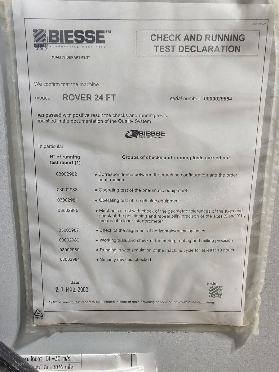 Biesse "Rover 24 FTS" CNC Router 48" x 120" phenolic router table