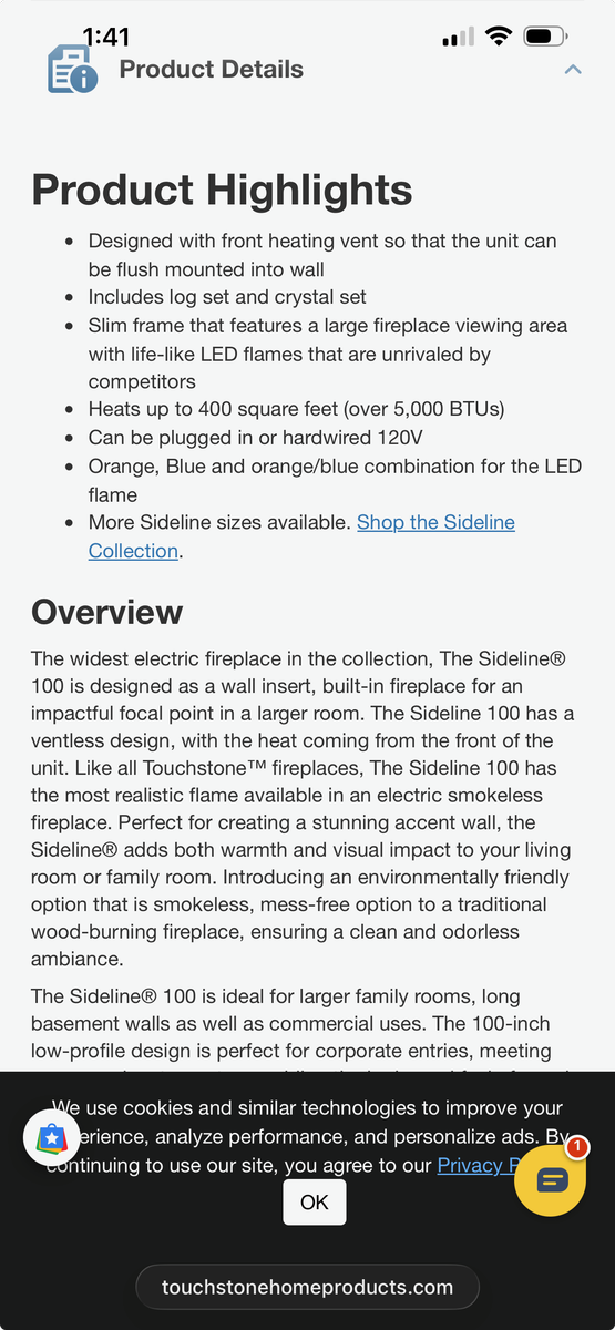 PayPalNEW IN BOX The Sideline 100 inch recessed smart electric fireplace