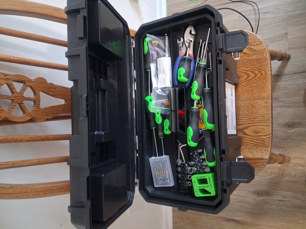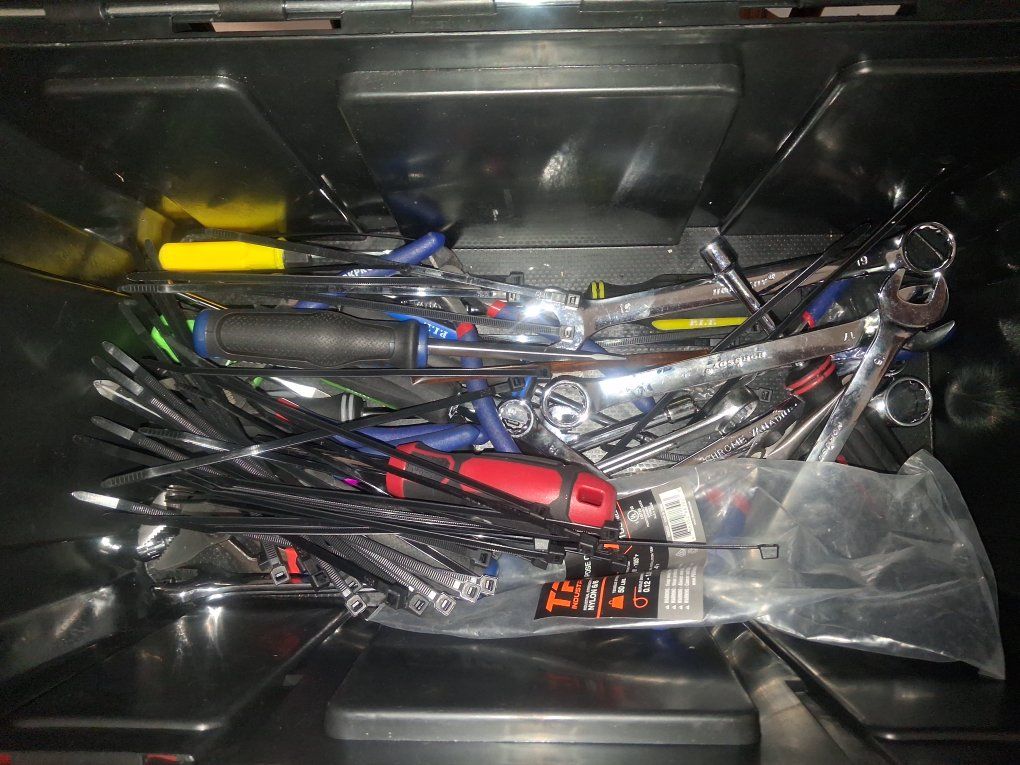 CashAppFull Tool Box Has Three Spoon Shaped Tire Changers Stem Removers Full set OhTorx Wrenches Allan Set Screw Drivers Elictrec Air Pump Digital. Cordless Drill Drill Bits. Lots More Over $500 Dollars Worth of Tools Alone And More.