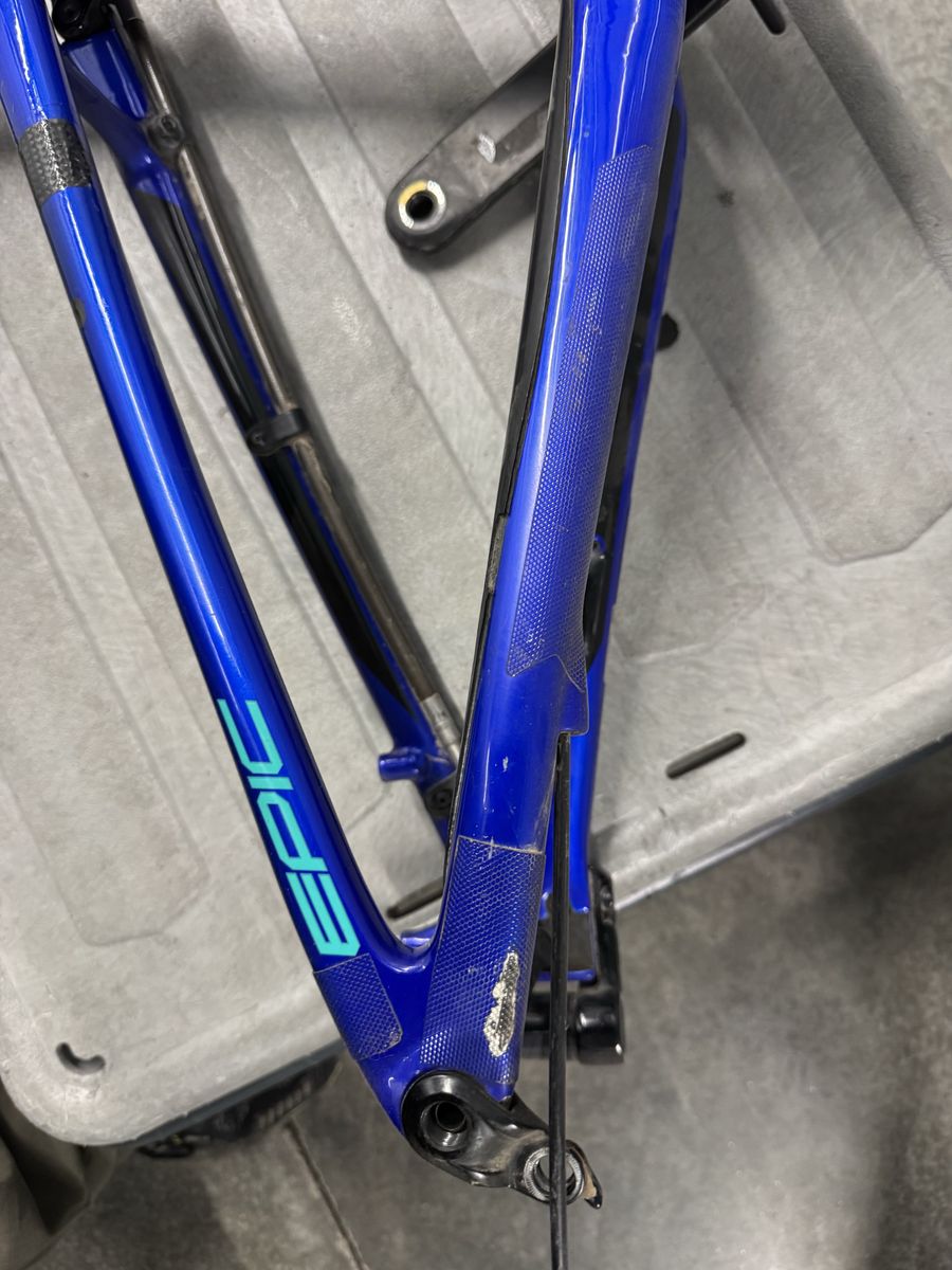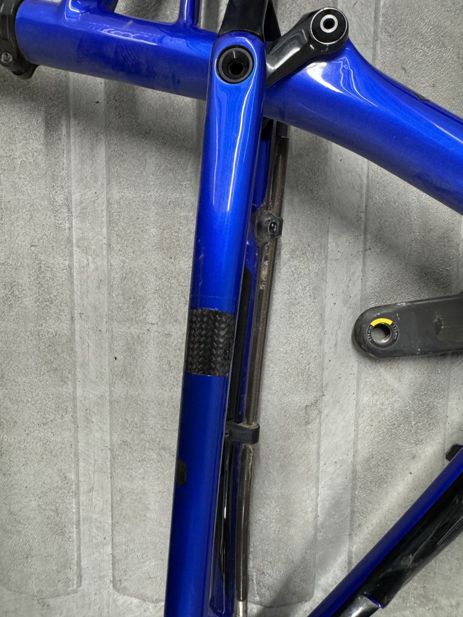 The frame had a carbon repair completed by East Bench Composites in Ogden. The repair was done professionally and is solid. No issues since the repair.