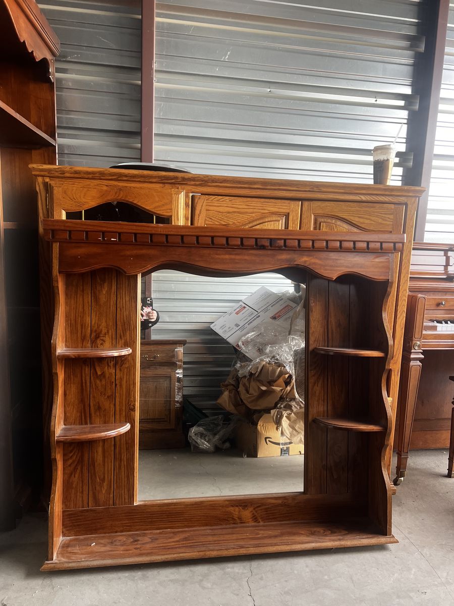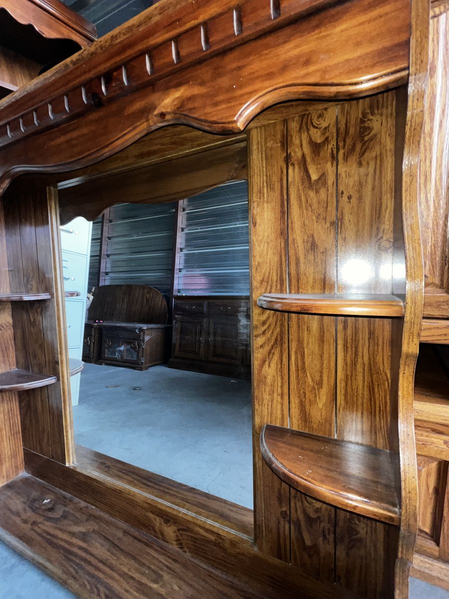 Beautiful vintage dresser with mirror cabinet/hutch. This piece is in great shape for its age and has been well cared for. There are a few minor scratches consistent with vintage furniture, but nothing that affects function or overall appearance.
