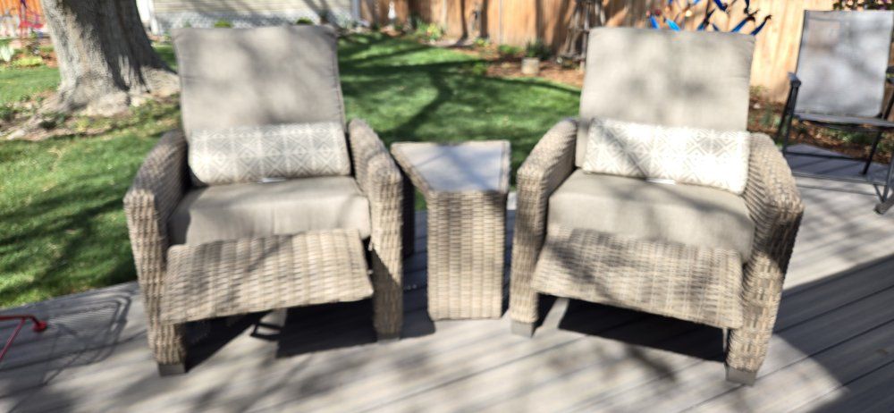 VenmoGently used Barcalounger furniture set with covers. Plastic all weather Wicker. Always covered when not in use. $999.99 at Costco several years ago. Perfect condition. $600.