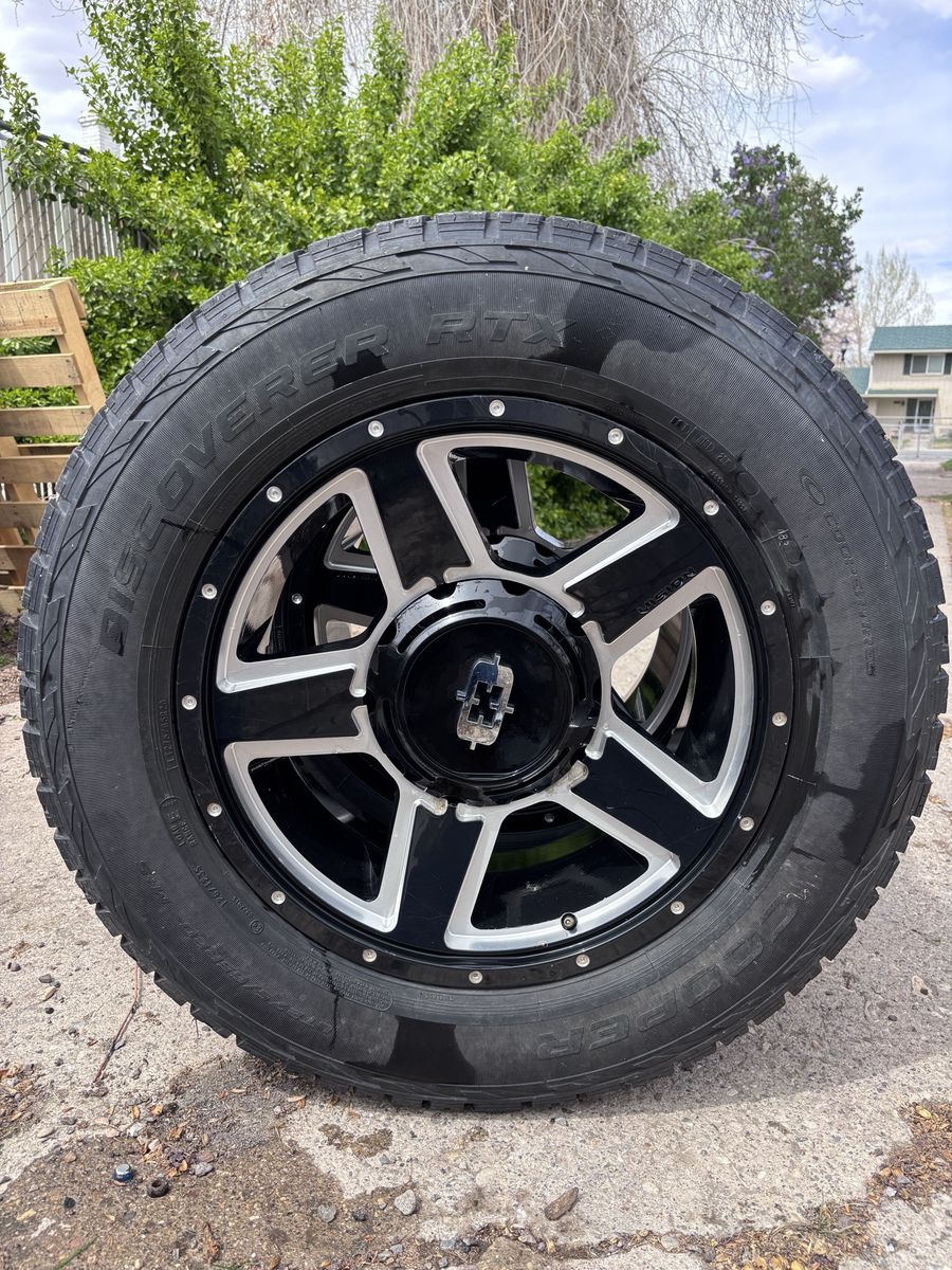 ApplePay8x170 vision wheels 20” with +22 offset. Tires still have some tread will throw in 2” spacers with them.