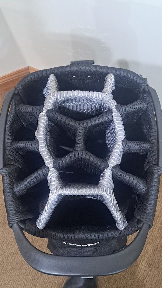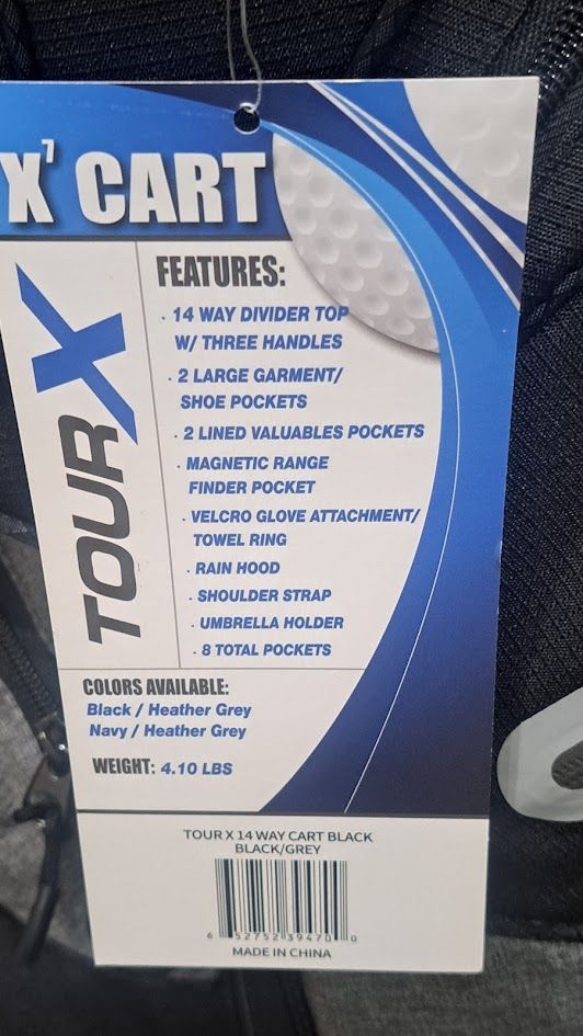 • Multiple zippered pockets for balls, tees, gloves, and accessories