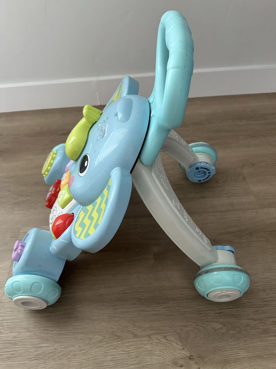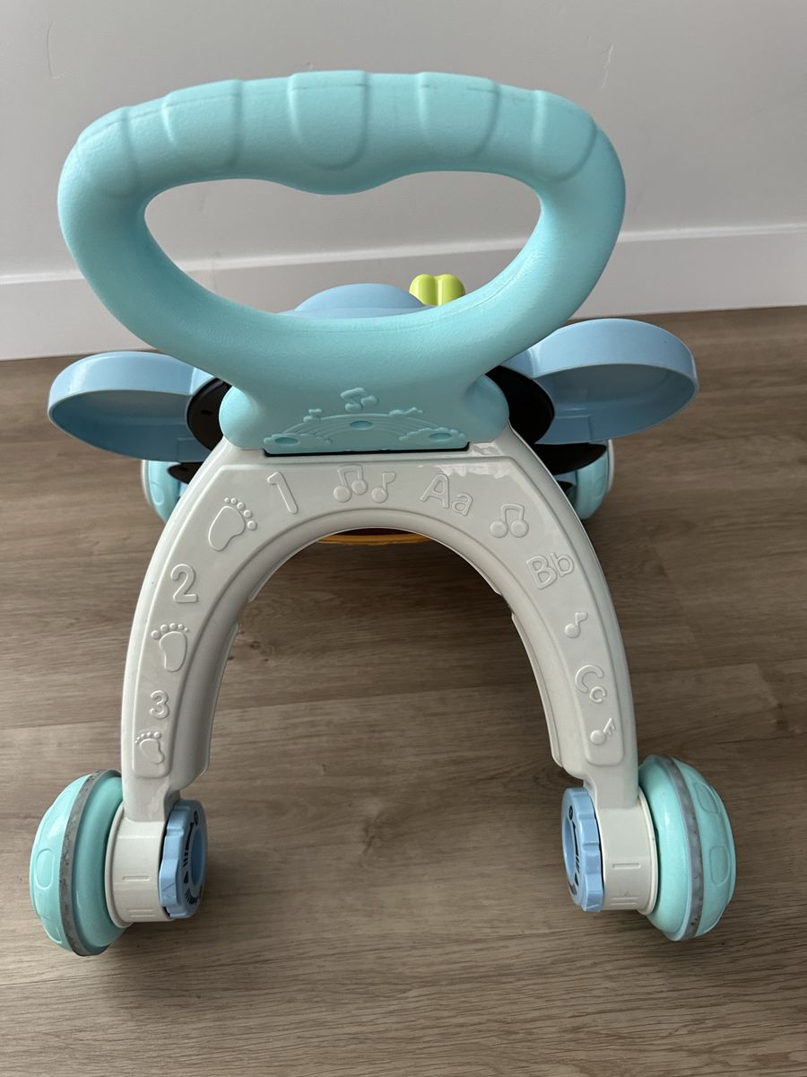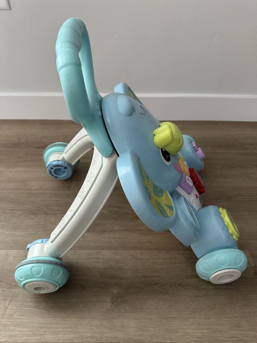 VenmoToddler walker to help babies get around. Has brake mode on back wheels to help slow down baby while learning to walk. All buttons, lights and sounds work.