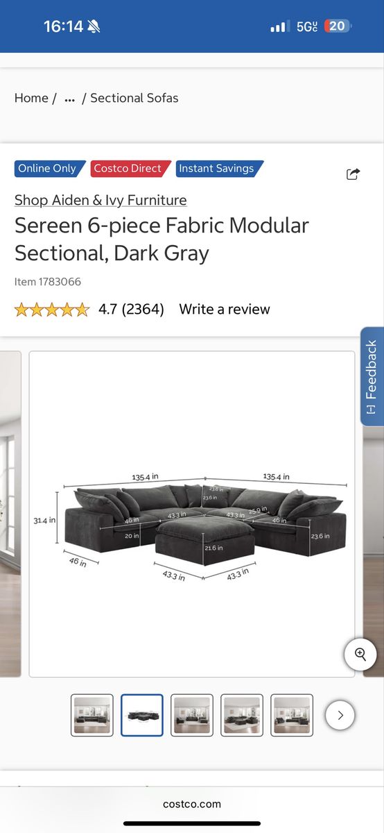 ApplePayI am selling a Costco Sereen 6-piece Fabric Modular Sectional Sofa Couch with Ottoman in like new condition