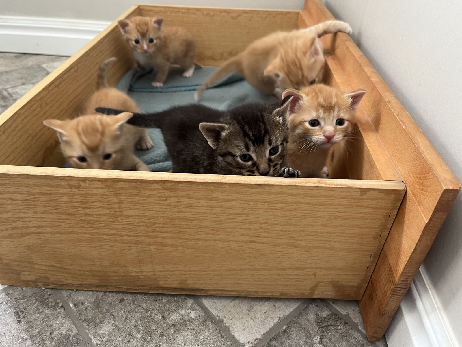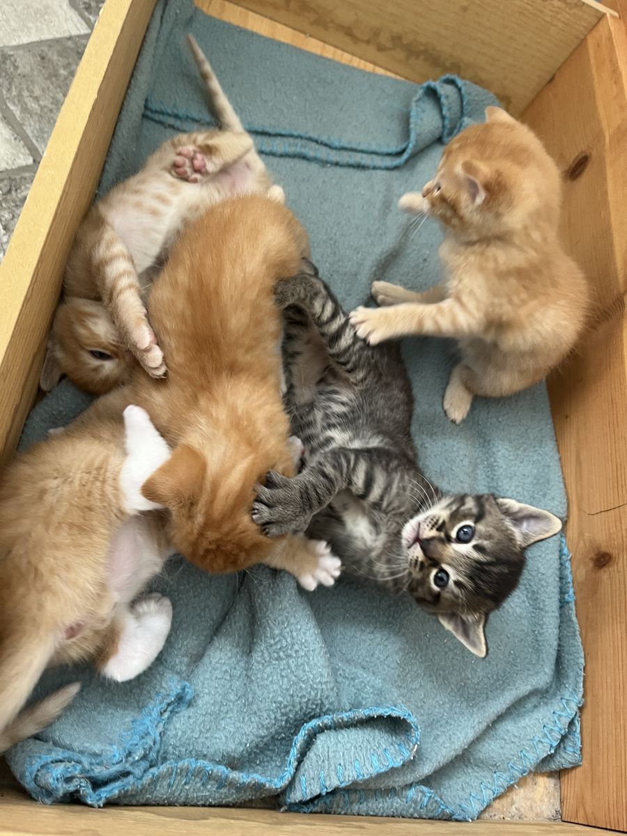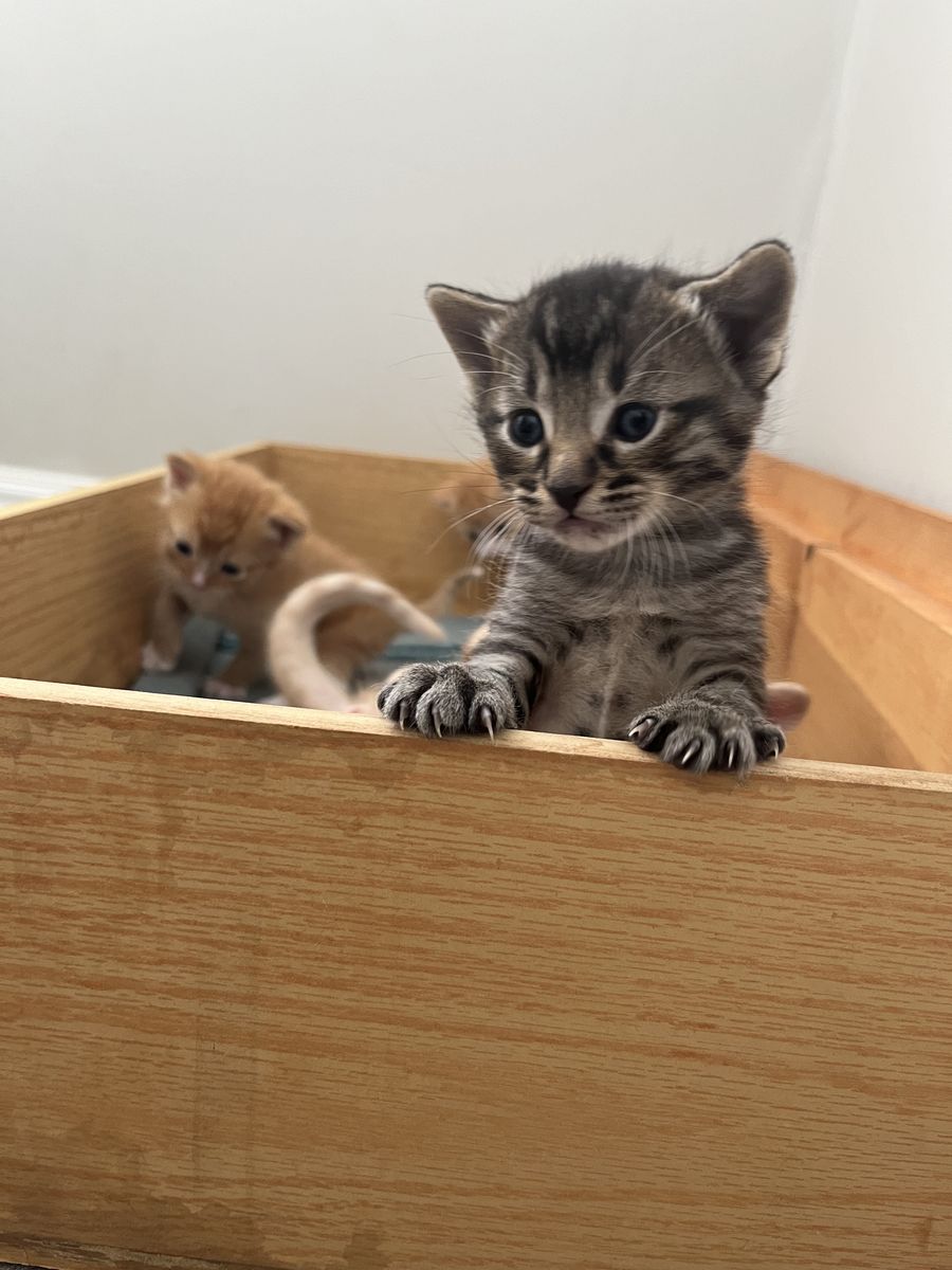 Venmo4 week old kittens! They are very friendly and have been around kids since before their eyes opened. They will be 8 weeks old and ready for a new home May 6. A 50% deposit will guarantee that we will hold them for you. We currently have someone tentatively interested in the black tabby and we have already sold the orange female. There are three remaing orange males.