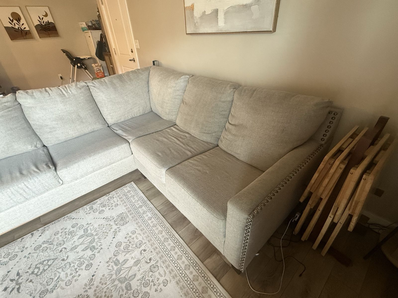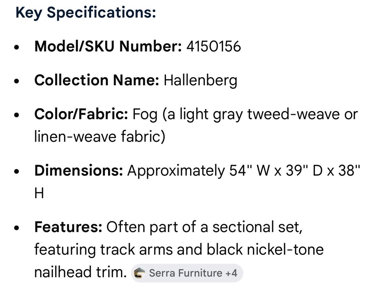 Color/Fabric: Fog (a light gray tweed-weave or linen-weave fabric)