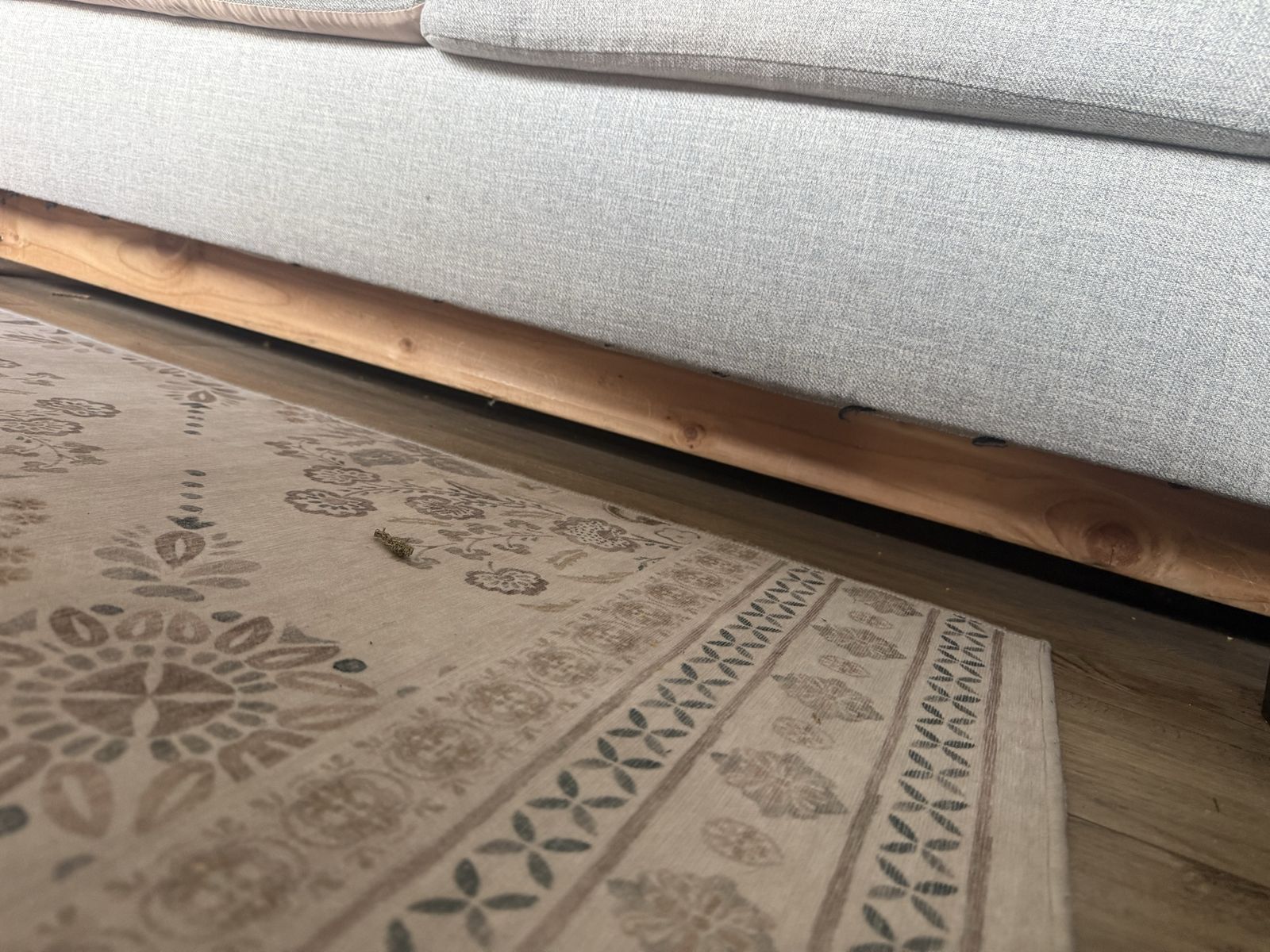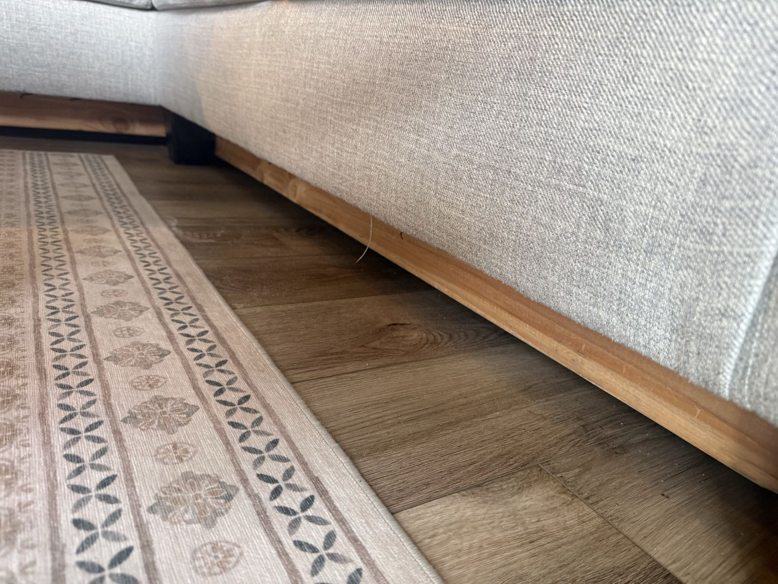 In good condition, separates into two sections, also has wood at the bottom not only for extra strength but to prevent objects from going under (Toddlers toys)