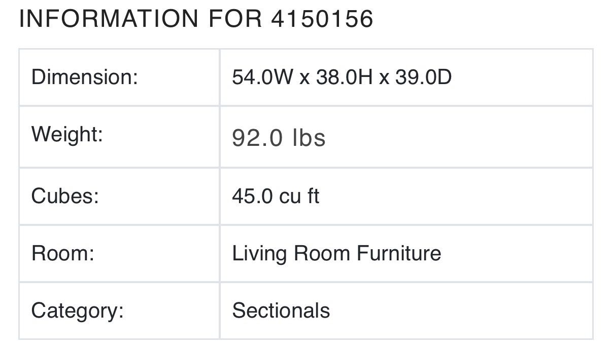 Dimensions: Approximately 54" W x 39" D x 38" H