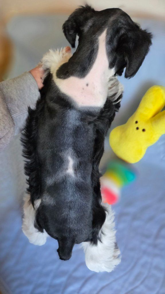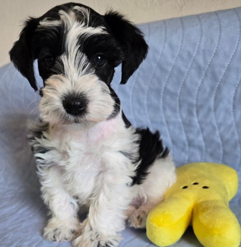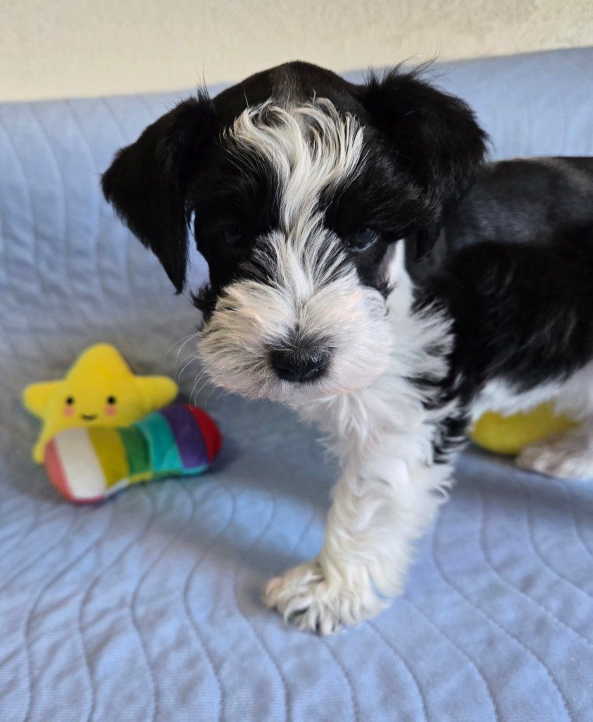 Ready on Mothers day . Come with utd shots and worming and Micro-chip, vet check, AKC papers and pedigree, goodie bag,5-year health guarantee Harness and leash .he does have specks of blue in each eyes