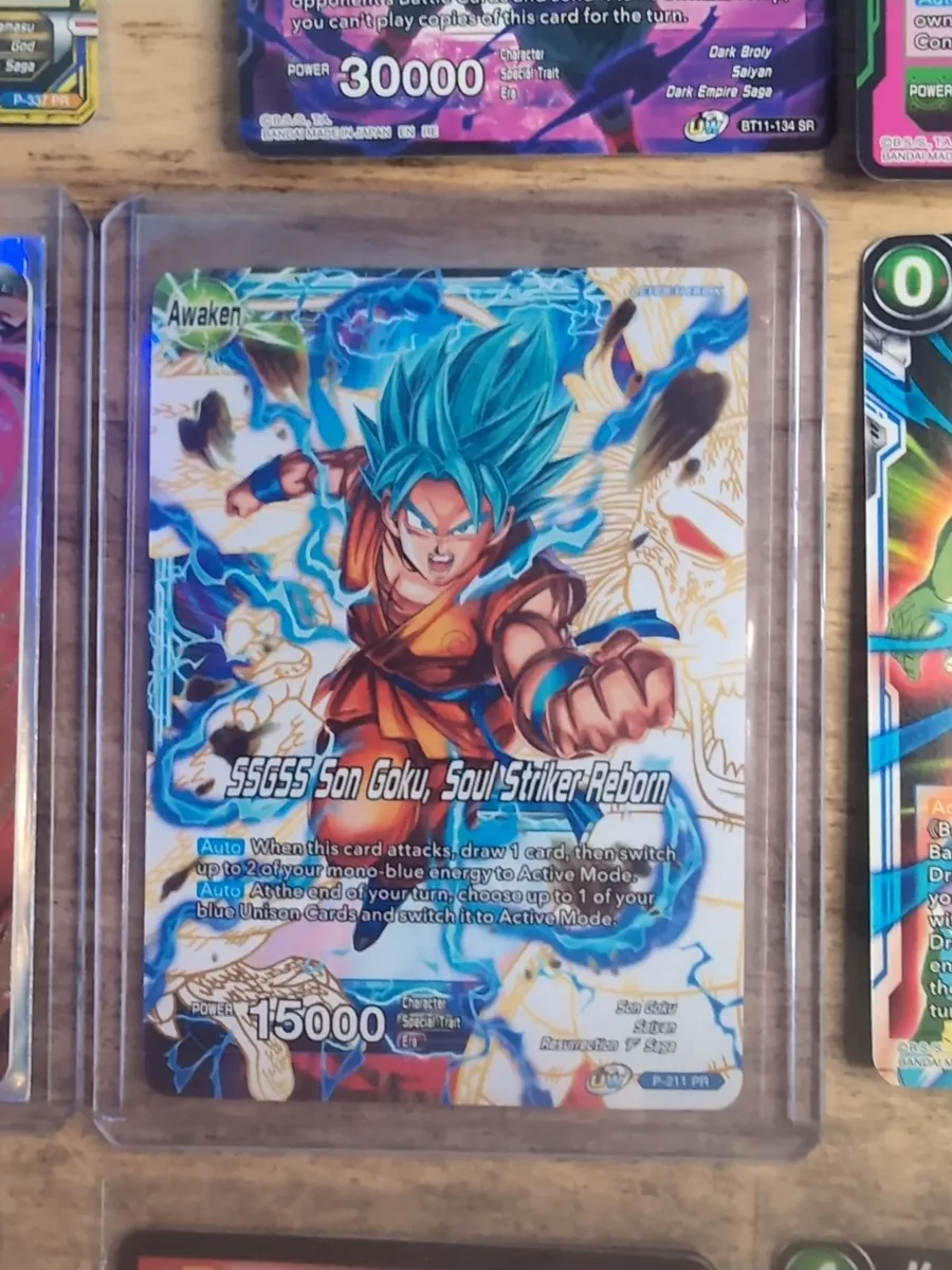 This product is a lot of 13 Dragon Ball Super promo cards, featuring characters like DRAGON BALL SUPER Promo PR, SR, ST, and SCR cards. The vintage Dragon Ball Z cards included are from the Dragon Ball Super Card Game, illustrated by Ken Sugimori and manufactured by Bandai. These standard-sized cards are made of high-quality card stock with a foil finish, making them a valuable addition to any collector's CCG mixed card lot.