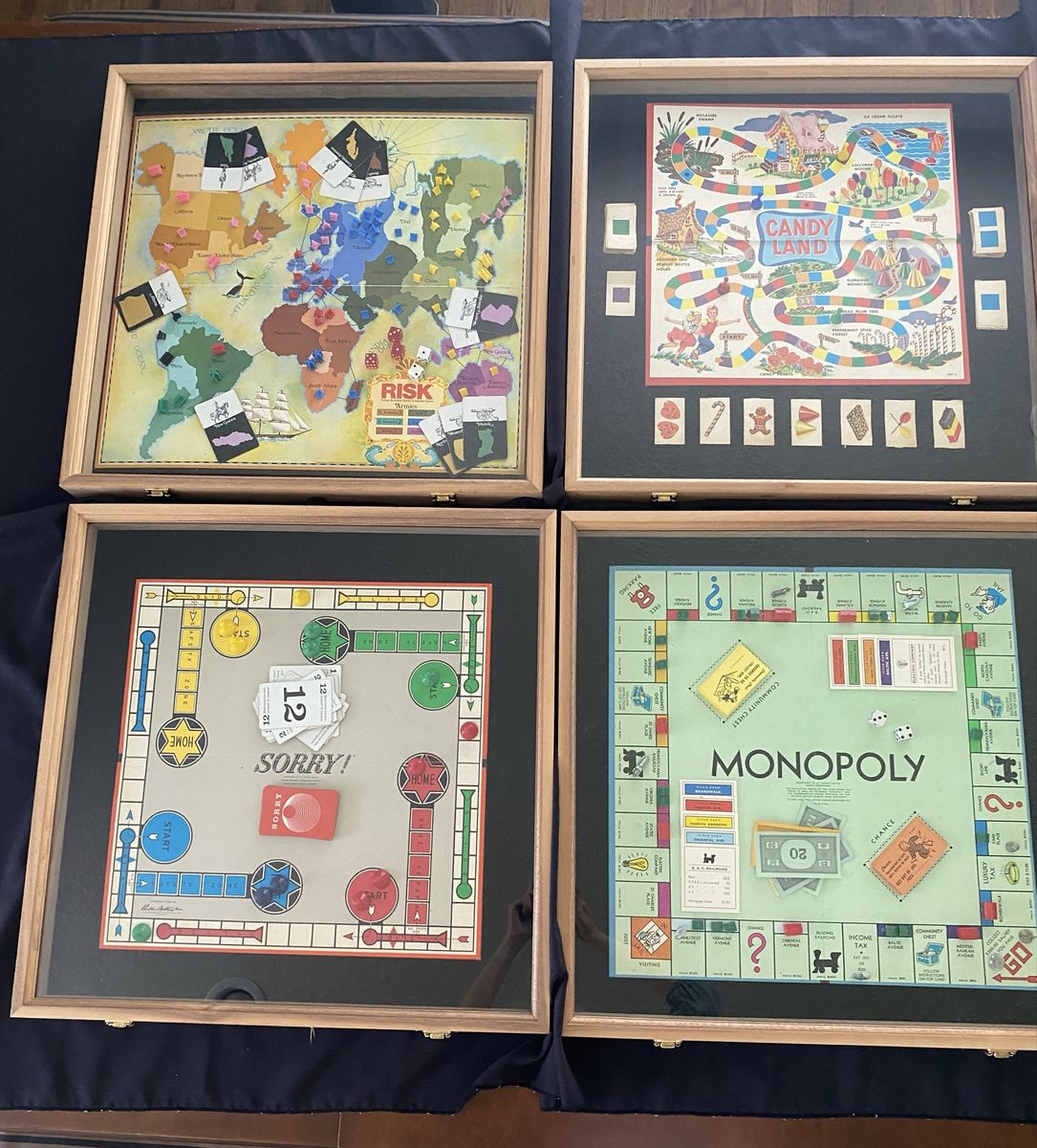 Zelle6 Vintage Game Boards Mounted in Shadow Boxes