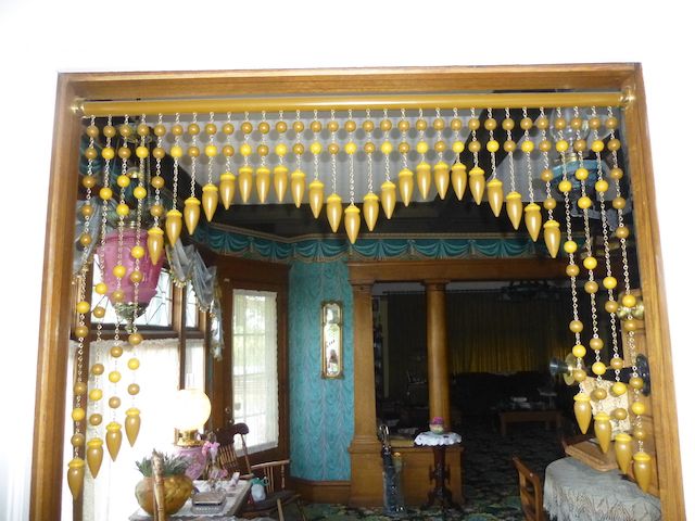 VenmoDoor curtains or portieres as they are also called, were used in homes in doorways between rooms. Practically these hung in doorways to stop drafts, but also they offer a romantic and inviting transition by softening doorways. Most were made of fabric, but also strung beads, tassels, decorative cording, etc. These were popular not only during the Victorian Era, but also the early Arts and Crafts homes. This one hung in a Victorian home above a pocket door, as shown in the pictures. This one is unique because it is made out of wood and chains. This door curtain is 4 feet wide. The tallest part is 33 inches and the shortest part is 9 inches. The center is 13 inches. It comes with the hardware to hang it. This is a reproduction piece. These are very hard to find now and this particular one is just beautiful. Plus it is in excellent condition! Serious inquires only please. Only selling this item, nothing else in the pictures. No Trades. Selling for a parent so the price is firm.