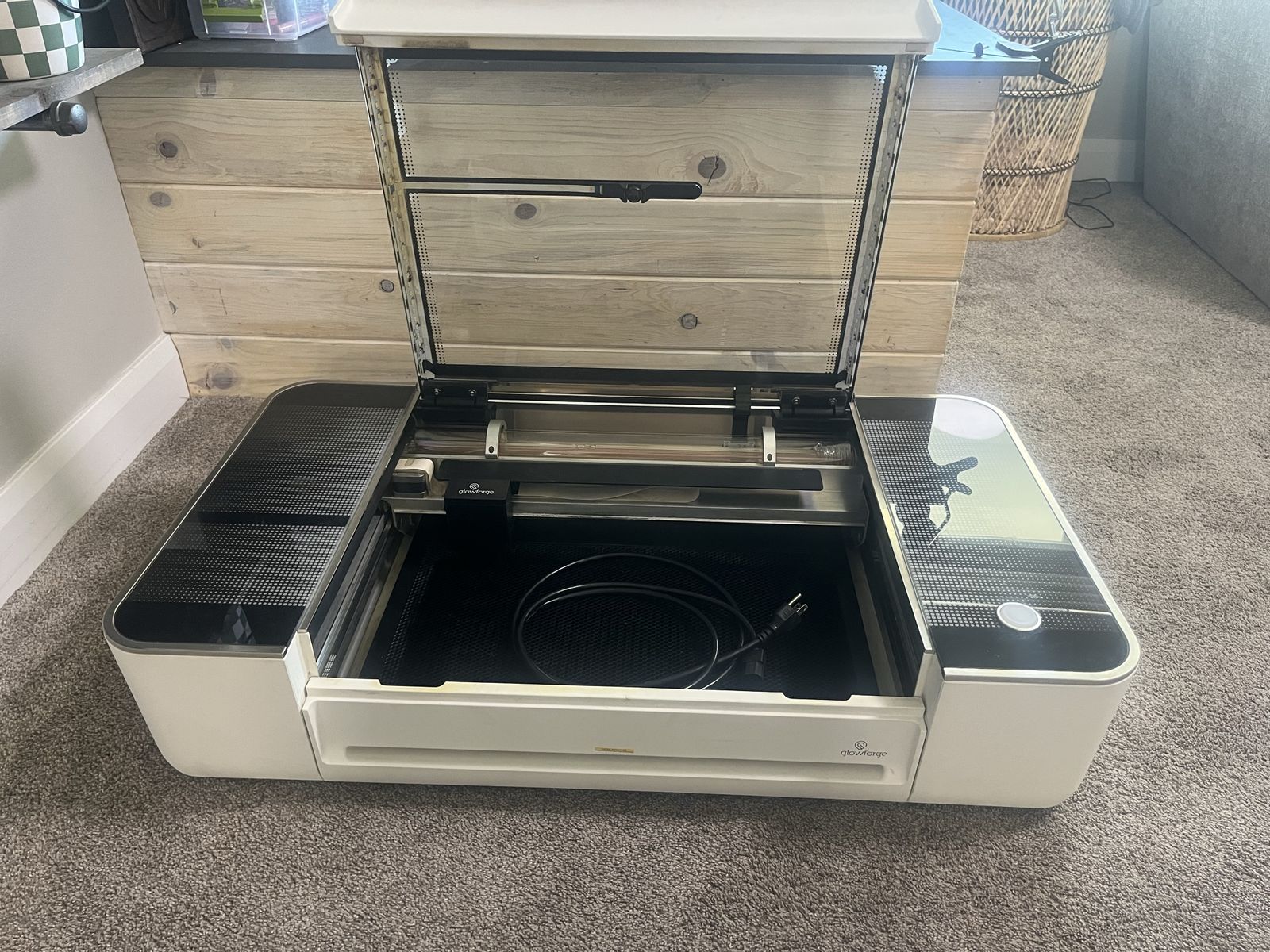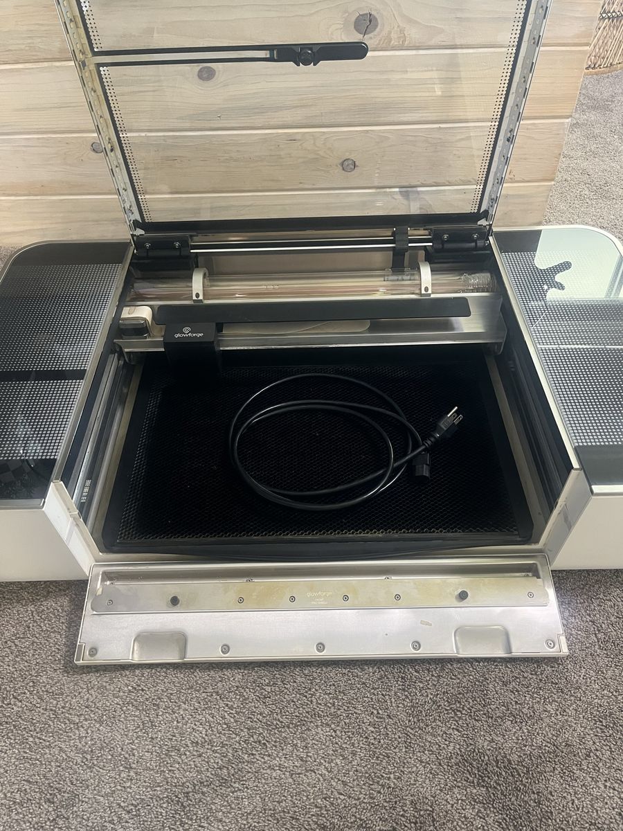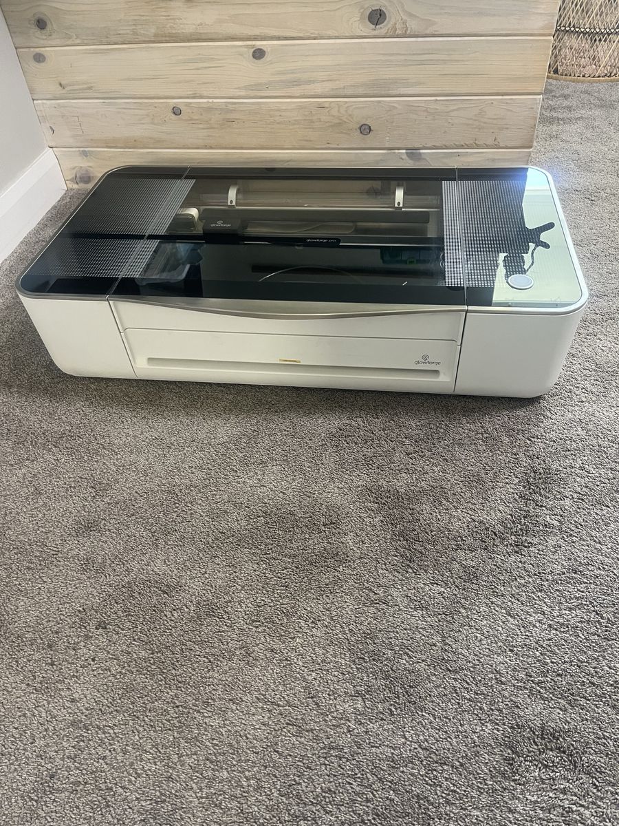 VenmoGlowforge pro. Has pass through so you can stick large items into the laser engraver. Can cut and engrave a variety of materials. Glowforge makes it very easy to to get up and running. Everything works great.