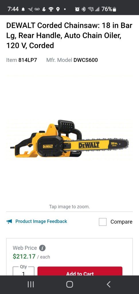 Venmobrand new 18" electric chainsaw dewalt never been opened asking $150.00 OBO