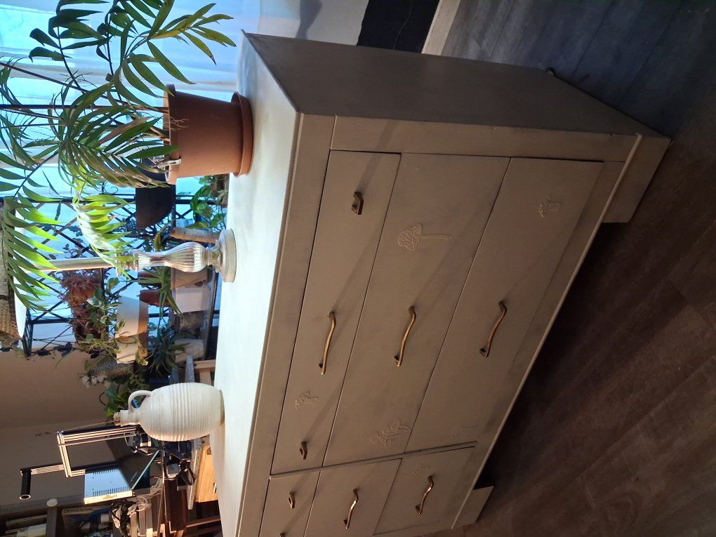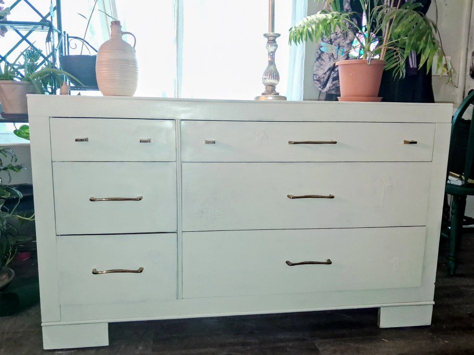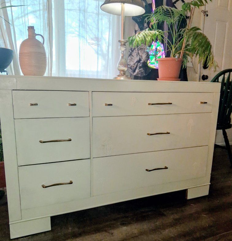 Gorgeous refinished dresser in a soft neutral tone that goes with any style. Solid wood, sturdy, and built to last. All drawers slide smoothly and offer tons of storage. Updated with modern hardware for a clean, stylish look while keeping a bit of its original character. Perfect for bedroom, nursery, or even as a statement piece in a living space. Clean, well cared for, and ready for its next home!