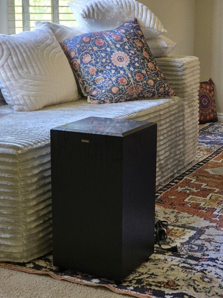 CashAppI've owned it for over 15 years, and it still works just like the day I got it. Decent shape. 7-inch DCD driver and dual down-firing ports. Very smooth laid back sound that rocks when it needs to, plenty enough volume for most, goes almost deep enough for anyone, great styling, easy room placement. Can be set up as a side table due to its low vibration design. Made in USA.