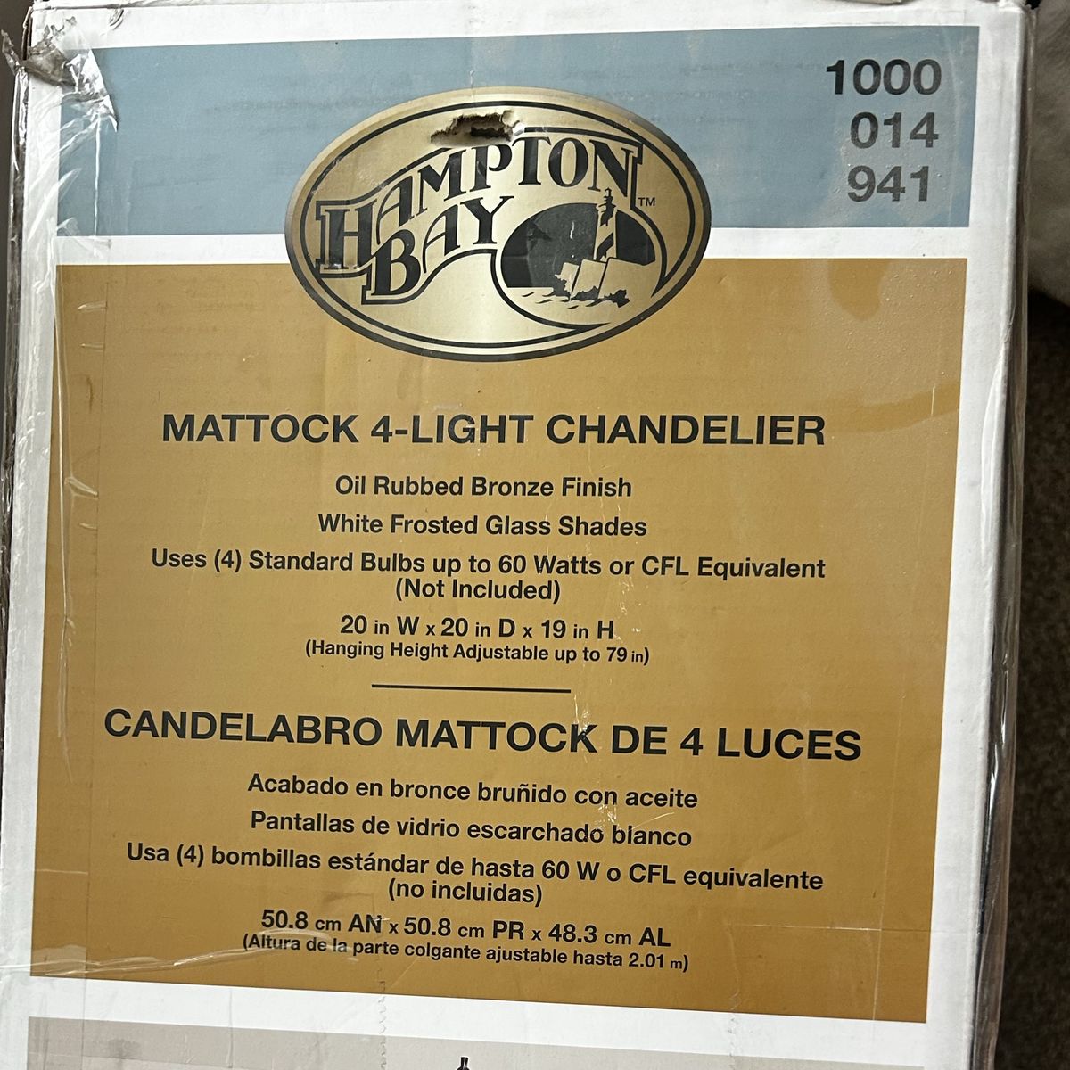 Matlock 4 light chandelier Oil rubbed bronze White shader proof glass shades W20xD20xH19 inch Hanging adjustable up to 79 inches
