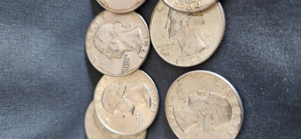 VenmoSilver 1961-1964 Quarter Dollar OBW Lot of fourteen coins. 1961P, 1962P, 2-1963P, 2-1963D, 6-64P, 2-64D. These came from my mother's estate. She would buy silver coins from the bank when they were new in the 1960s. I can't guarantee these are OBW but have no reason not to based on her collecting and condition. Very few minor dings on some from mint and bank handling is my guess, but consider circulated. I have more 1964s and other years in similar condition if you want more. These are great for coin albums, resale, stacking or possible grading. Melt is approx $10/ea. Price goes up as silver goes up. First $160 for fourteen 90% silver quarters gets them! Come and get it. KSL Messenger or text 80l64l477l. KSL Messenger is best.
