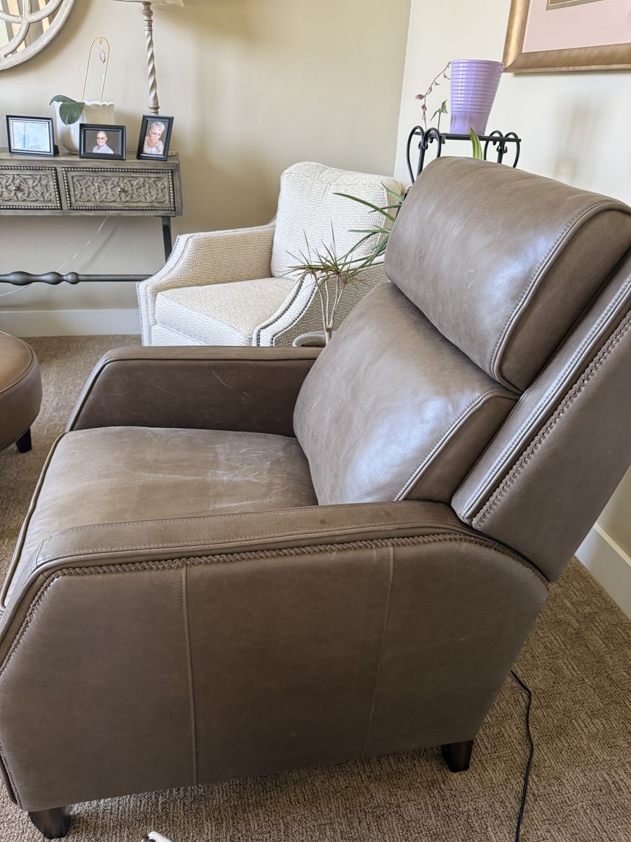 VenmoTaupe power recliner with adjustable head rest