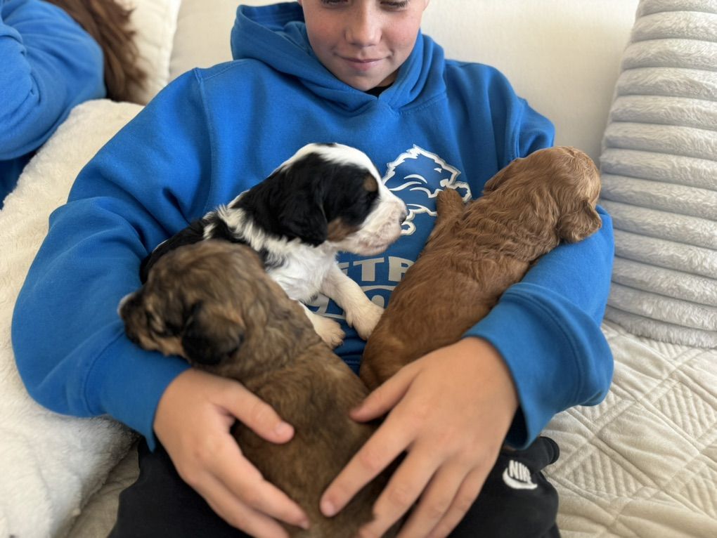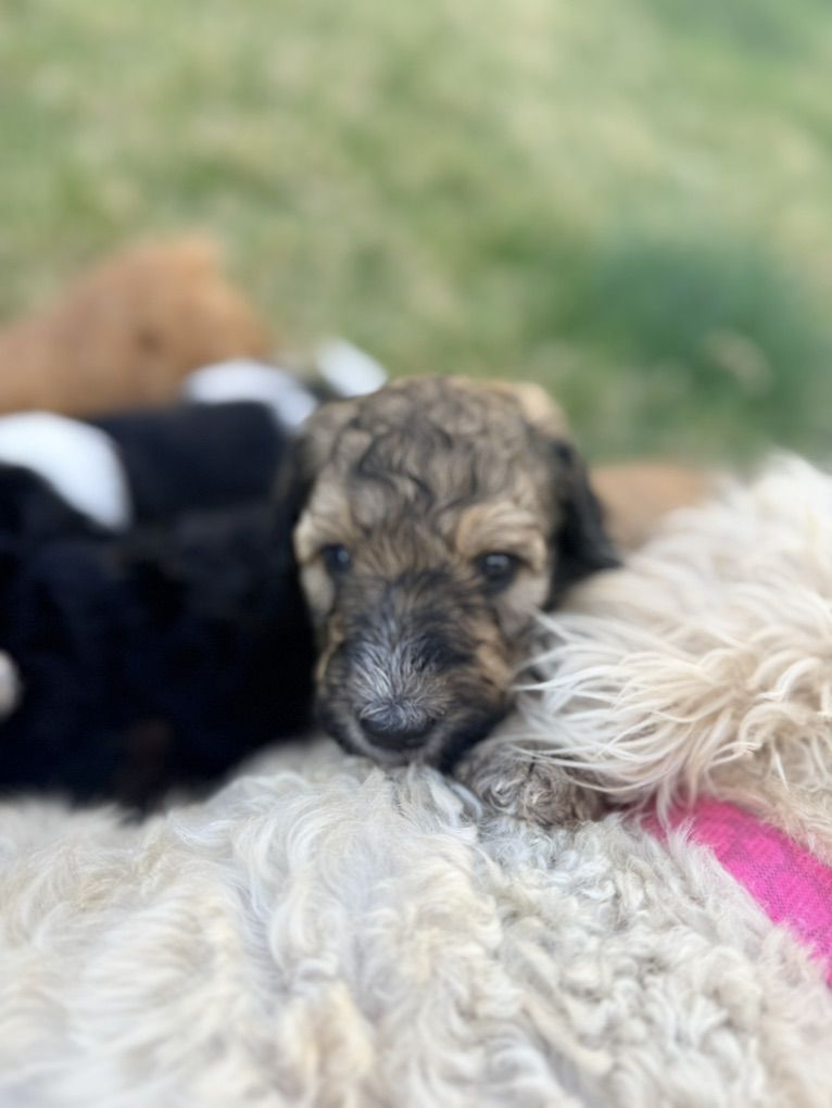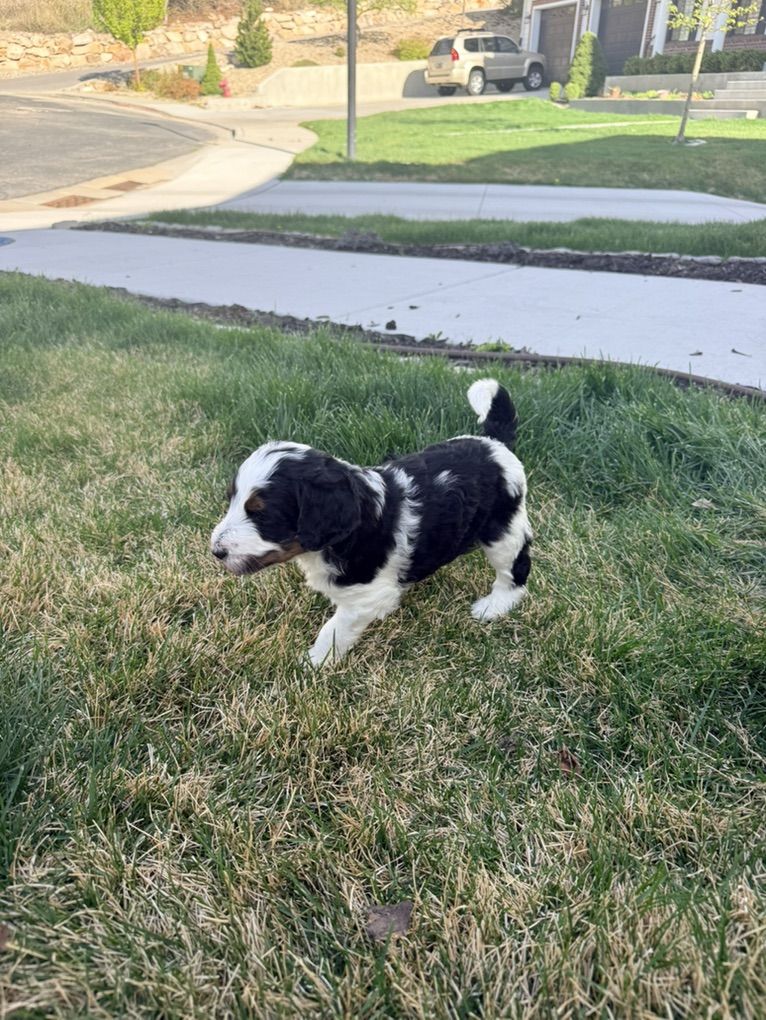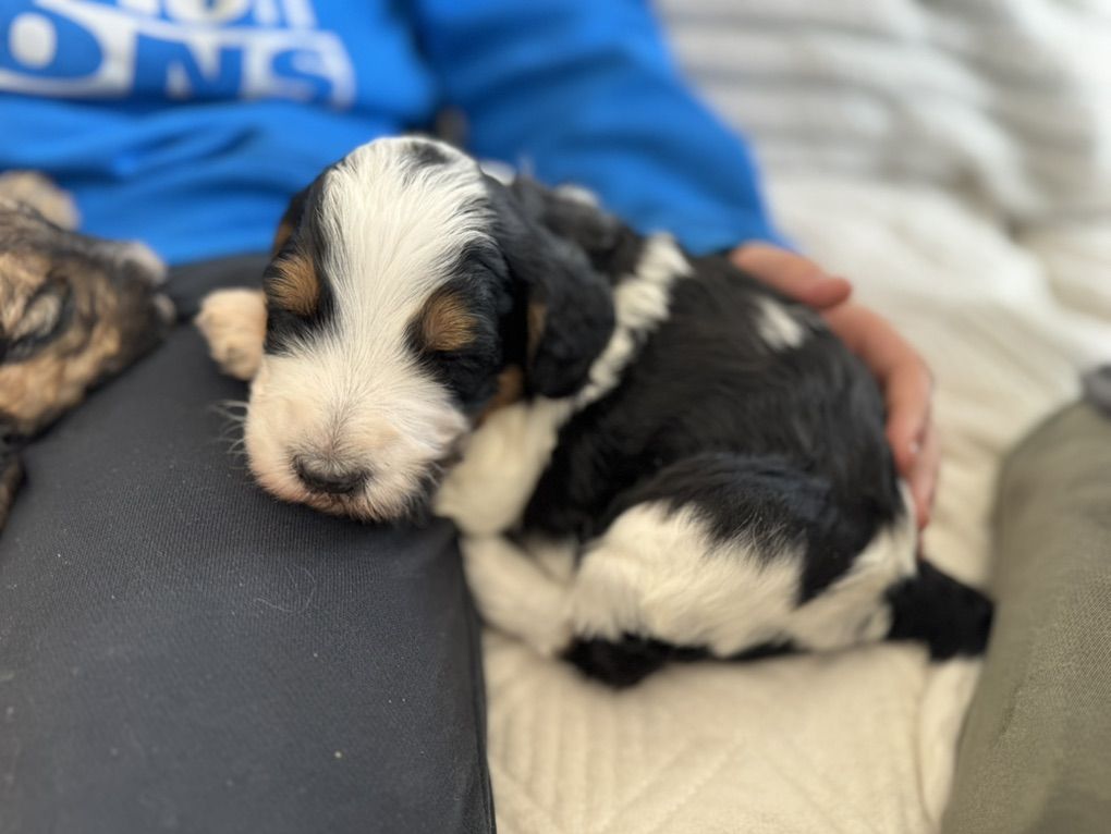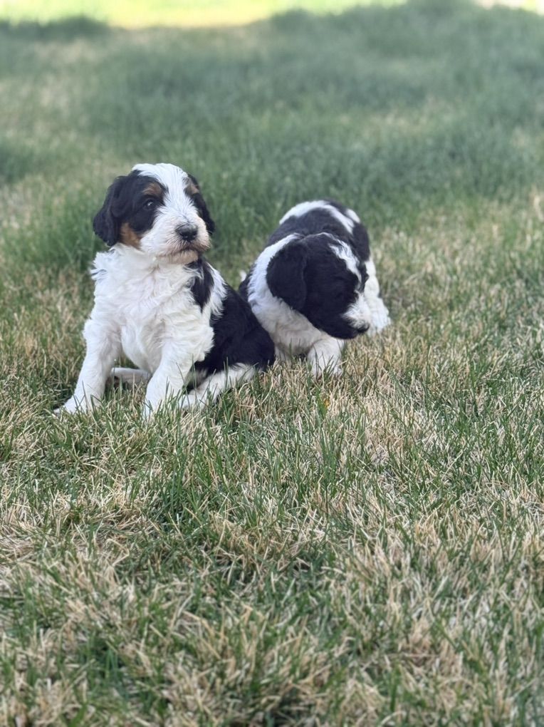 Our sweet family dog Salty welcomed 5 beautiful Bernedoodle puppies March 10 (Mom is a white Bernedoodle, Dad is a jet black Poodle). They will be ready for their new homes in early May. These puppies will be raised in our home with lots of love, handling and early socialization. Expected Traits: Hypoallergenic Minimal shedding Great family dog Likely medium to standard size Details First Vaccinations included Dewormed Vet Checked $1,500 ($500 deposit to reserve a puppy) We are looking for GREAT HOMES where these puppies will be LOVED as family members. Message me if you are interested