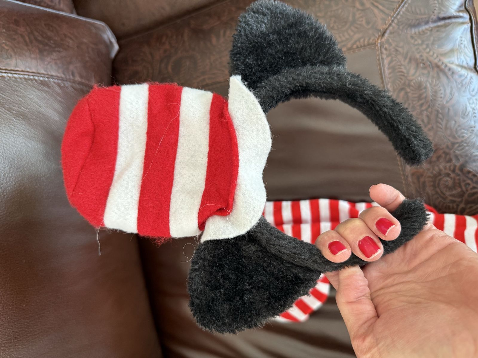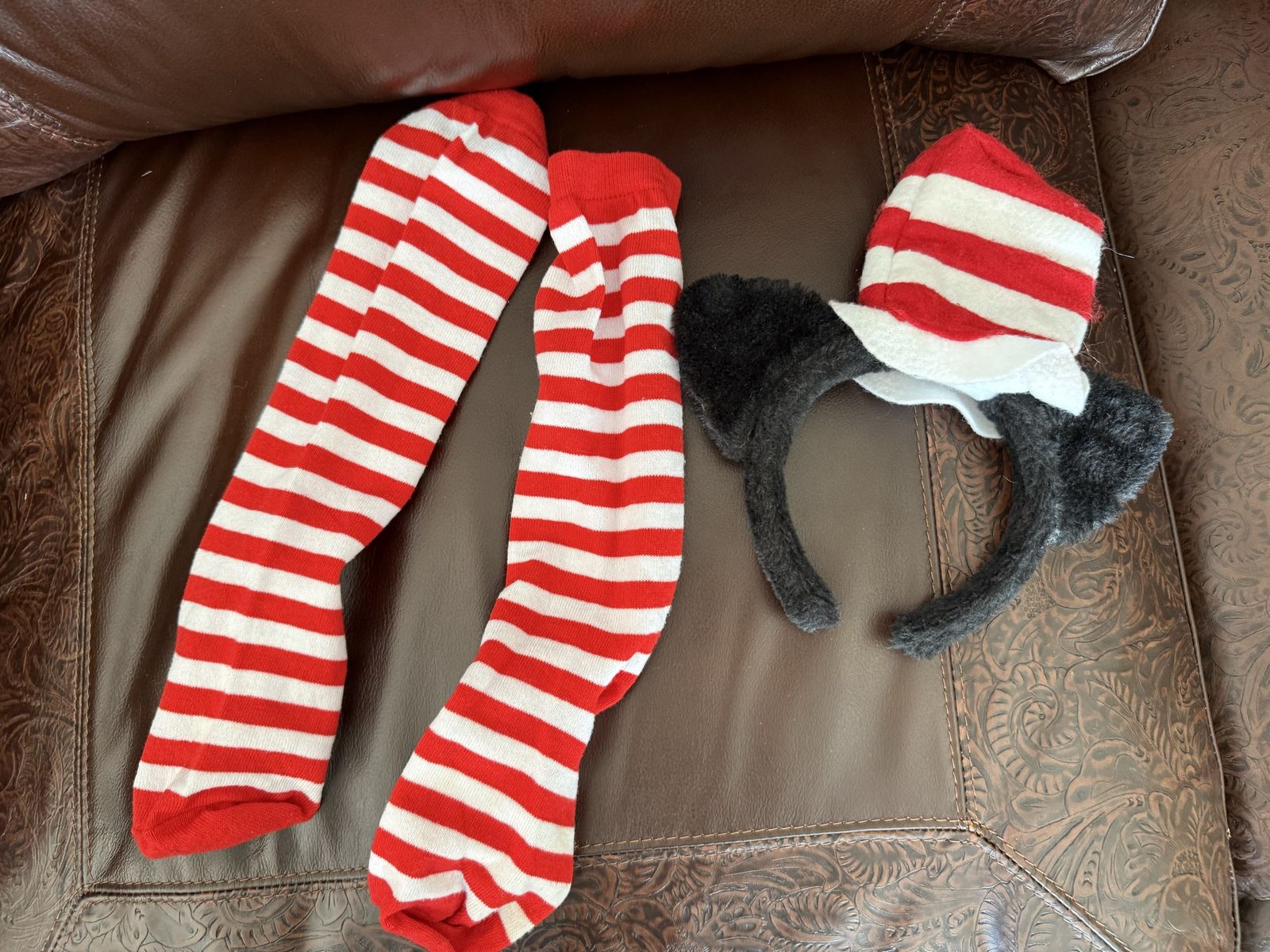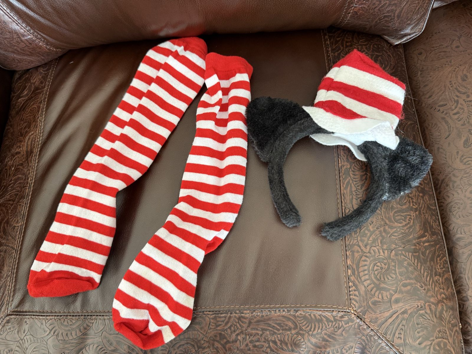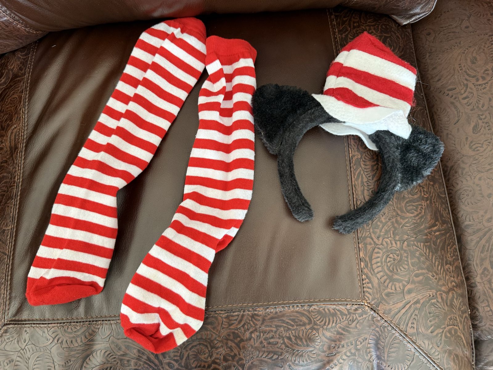 Adult Cat in the Hat socks (one size women) and hat costume set does have damage on hat as shown