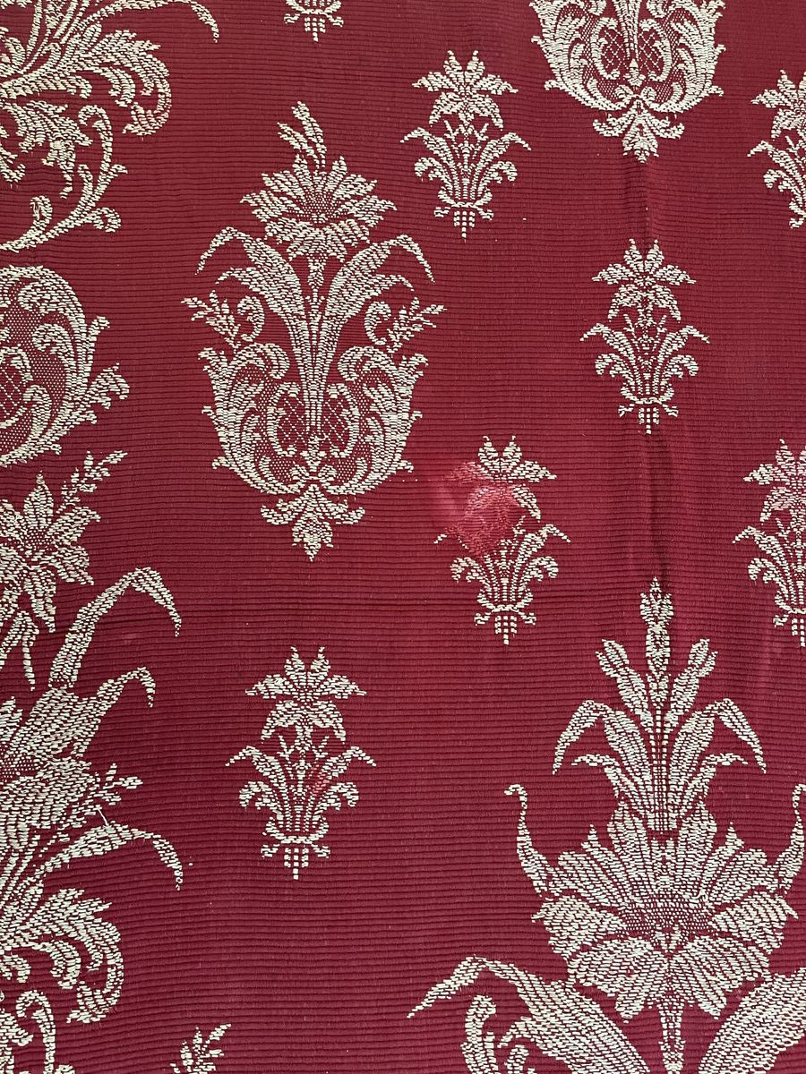 VenmoI believe this is a twin size. It measures 46 inches x 105 inches. It has beautiful raised stitching. The contrast color is a beige. I can’t really tell the front from the back. This is a work of art. It is made of a heavy material. There is a fringed tassel edge on both ends. One end is fancier than the other. The fringed edge is 2 ½ inches on one end and 8 inches on the other end. This would also be stunning as a curtain for example in a Victorian home. Or beautiful as a large throw on a sofa. This has on small spot on it that is a little lighter in color. I have two matching bedspreads. The photos and the price are for only one. The second matching bedspread is not as nice as the first. I would sell the second also for a discounted price. Selling for a parent.