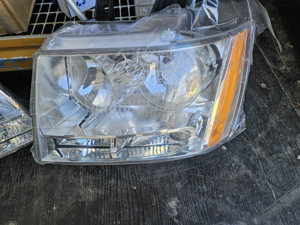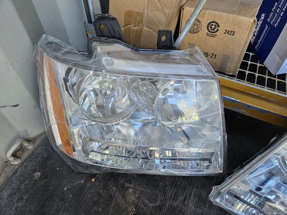 VenmoBrand new aftermarket headlight assembly set (left and right). Fits Chevy Tahoe / Suburban / Avalanche (approx. 2007–2014) Includes both driver and passenger side Clear lenses with chrome housing Direct replacement style New condition, never installed Please verify compatibility with your specific vehicle before purchasing.