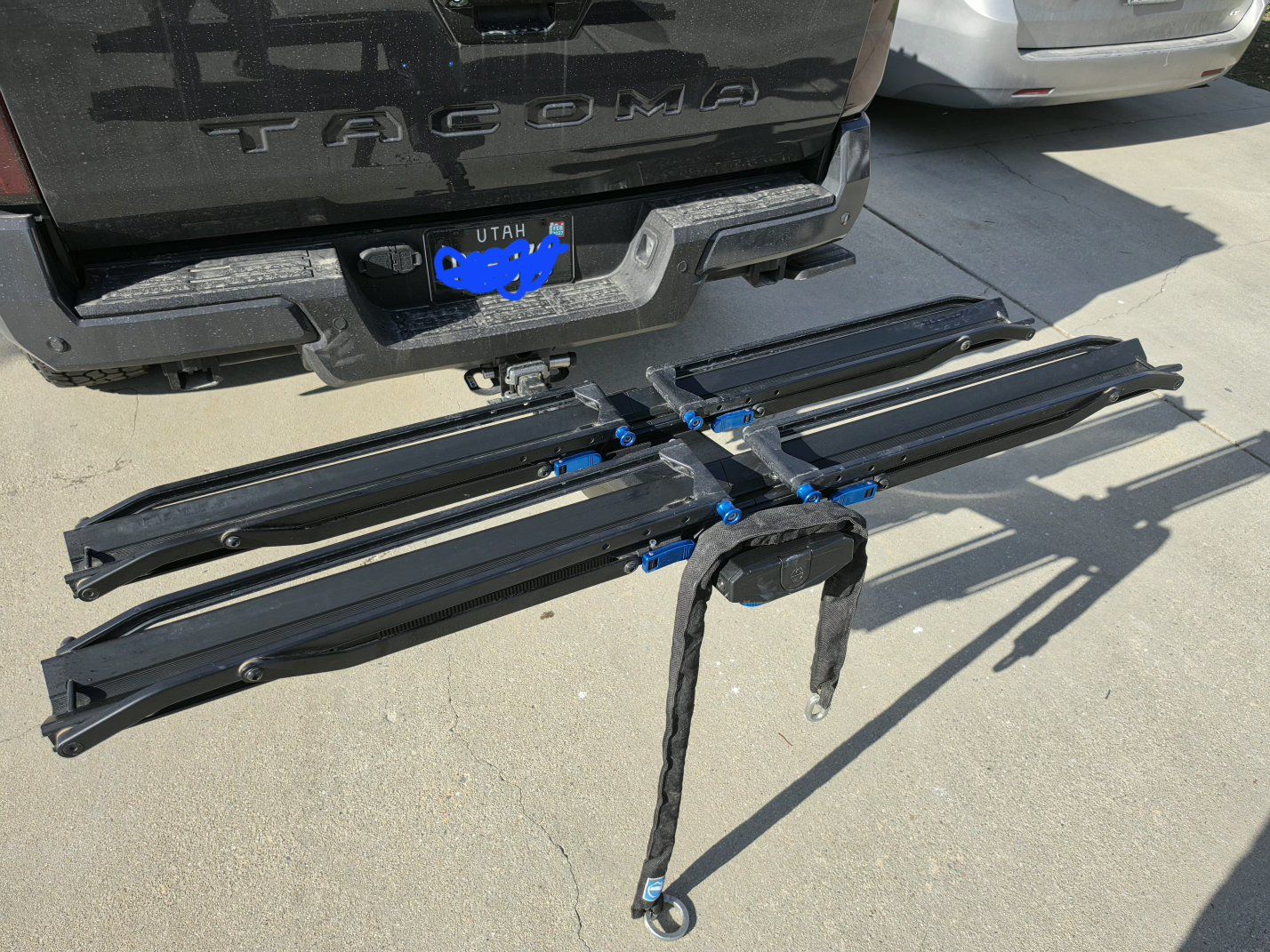 -1.25 in hitch mount -this is $1,000 new with tax. -I only use this for one half season, ended up getting a new vehicle and got the same rack again, but 2-in hitch. -is includes all the hardware to adapt to a 2-in hitch, 1.25 in hitch mount -cut proof chain chain to secure your bikes without stress.