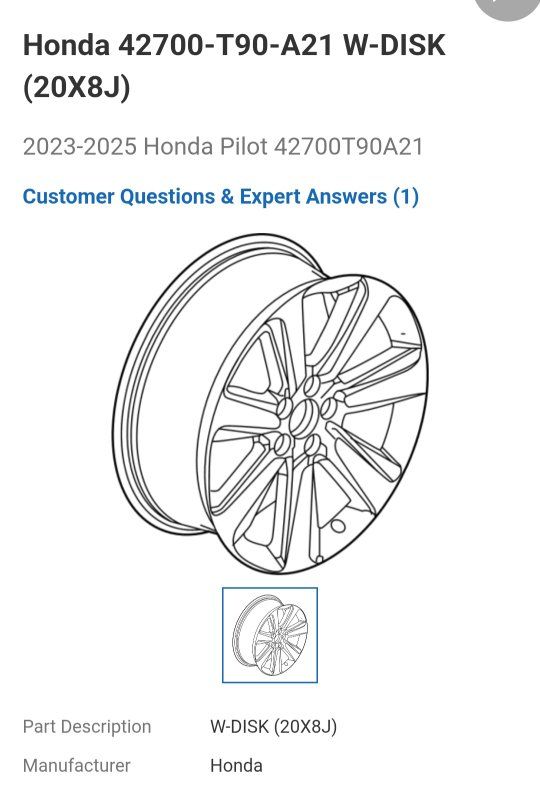 VenmoThe 2023-2025 Honda Pilot Single Rim Model 42700T90A21 is a genuine Honda replacement part designed specifically for the Honda Pilot model. This rim, with the superseded part number 42700TG7A72, is not a vintage part and does not offer universal fitment. It is a performance part, ensuring a perfect fit and maintaining the overall aesthetic and functionality of the vehicle. This product is a crucial part for the Honda Pilot, ensuring optimal performance and durability.
