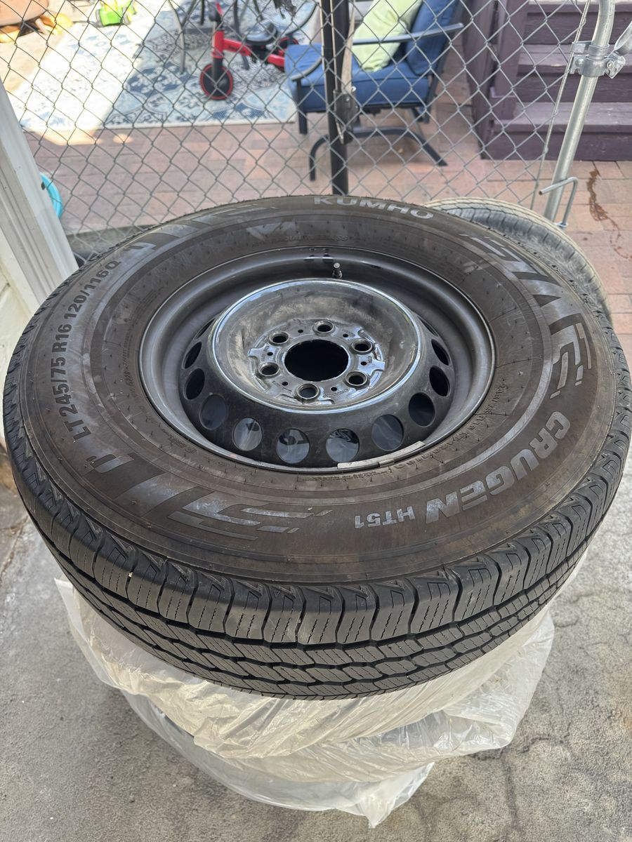 Lightly used set of 5 Kumho Crugen HT51 LT245/75 R16 all Season Truck & SUV Tires and wheels.