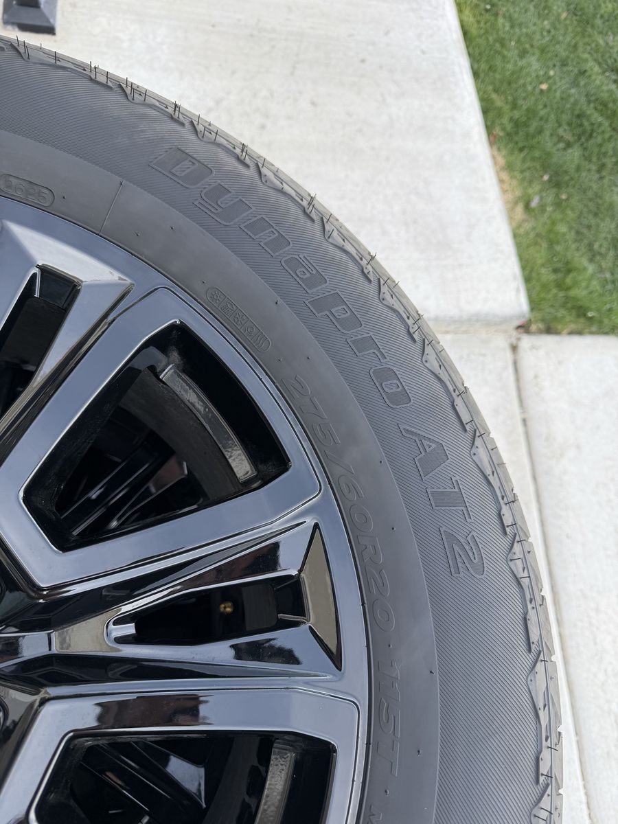 ApplePaySet of 4-Ford F150 Rims and Tires 275/60R20 Hankook Dynapro AT2 almost new less then 1000 miles in excellent condition asking $1500 obo I can sell the rims or tires separately Bolt pattern 6-135 They will fit ford f150 from 2004-2026 Ford expedition and Lincoln Navigator Text anytime 385-402-2292