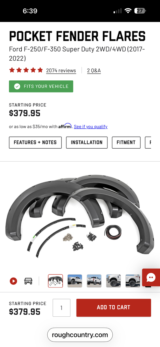 ZelleBrand new rough country pocket flares for 2017-2022 Superduty. Includes all four flares / weather stripping/ all hardware. Nothing wrong with them just sold truck before I got around to having them painted/installed. $180 OBO, cash is king but can except Zelle and Venmo(fees are on you).