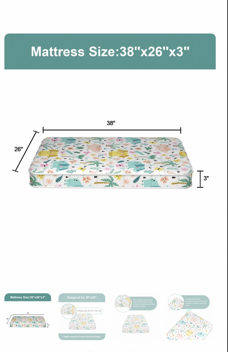 ApplePayMoonlightfamily 3 Inch 38" Lx26 W Mattress, No Gaps Edge Reinforcement High Density Foam, Odorless and Steady, Certipur-us and Oeko -tex Certified, Elephant