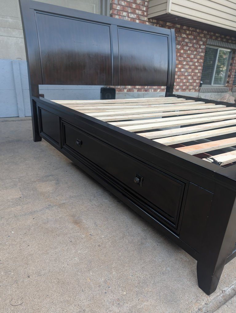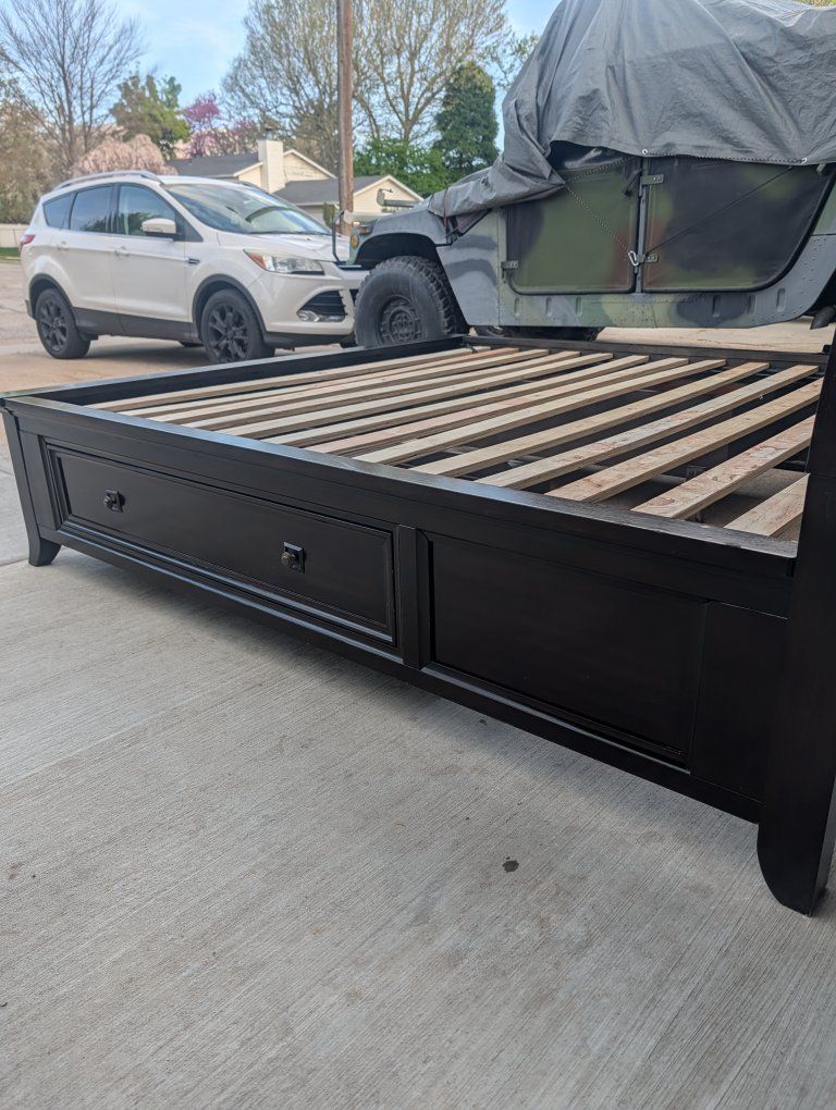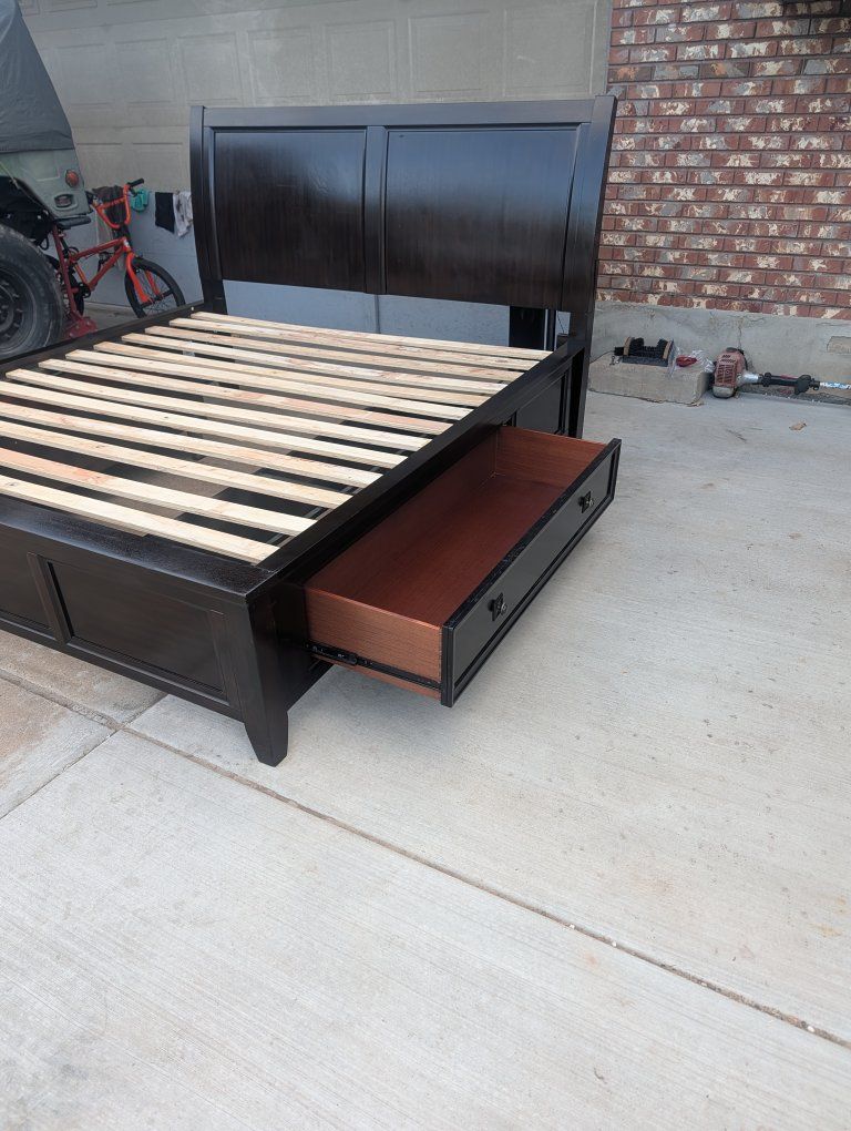 VenmoNice bedframe from Ashley furniture. Has some wear marks but in good shape. Both drawers work smooth. No missing hardware. Headboard is 54" tall but can be removed if not wanted.