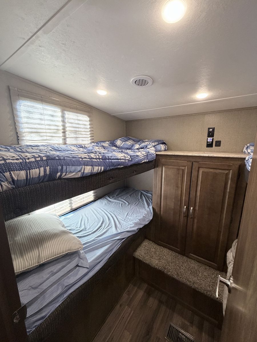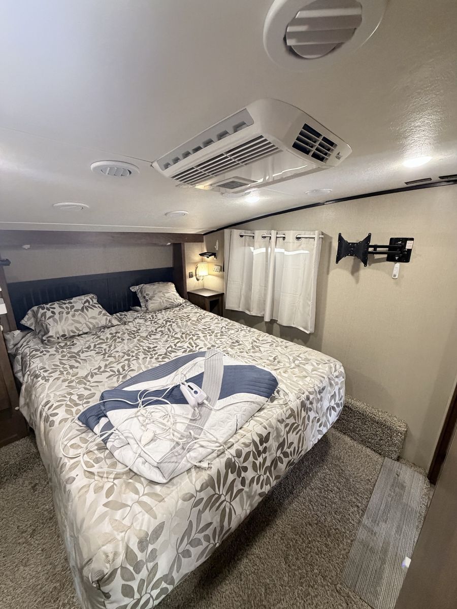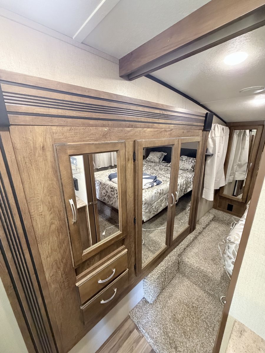 *3 extensiones (slides) *Capacidad para hasta 10 personas *Generador nuevo de 4,500W *Llantas en excelente estado *Colchón nuevo de memory foam con controles *digitales de temperatura *Sistema de nivelación eléctrica (adelante y atrás) *Calefactor adicional nuevo en la cocina *Aire acondicionado extra en la parte frontal *Antena y receptor DISH incluidos *Cámaras de reversa y estacionamiento *Enganche (hitch) incluido