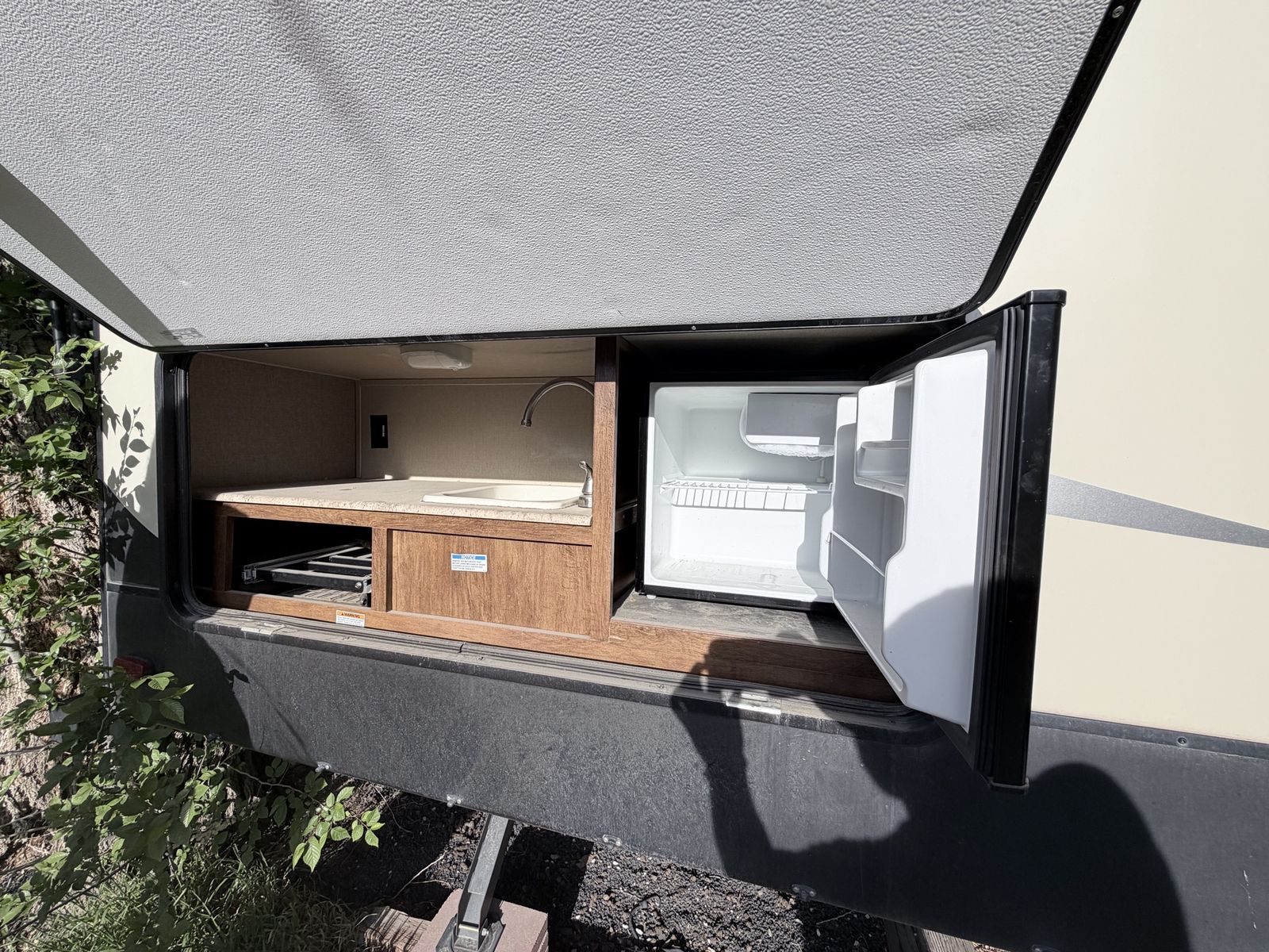 The only detail is that the vinyl cover that extends out with the awning needs to be replaced because it has some rips on it, the electric awning does work without issues.