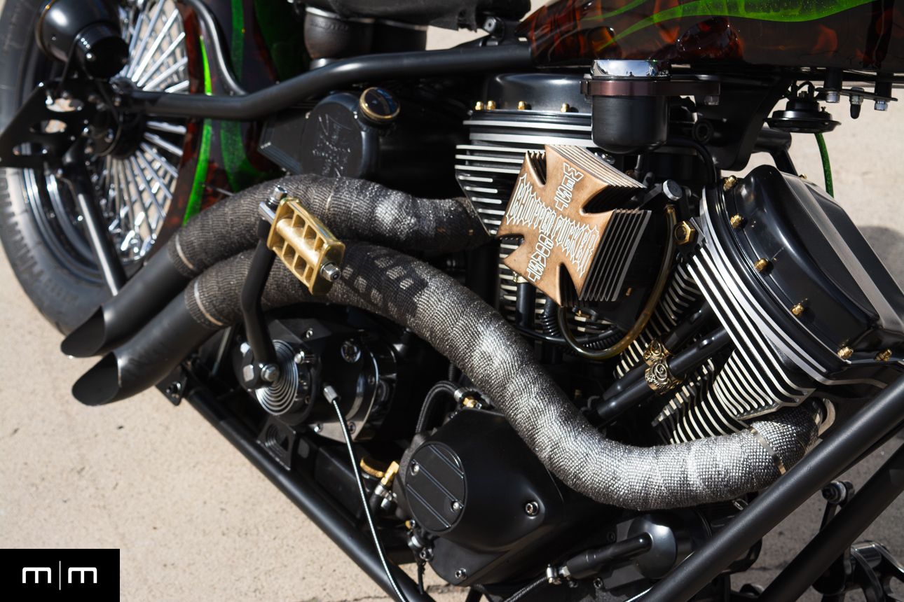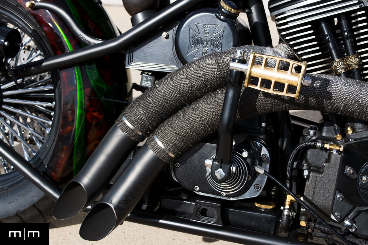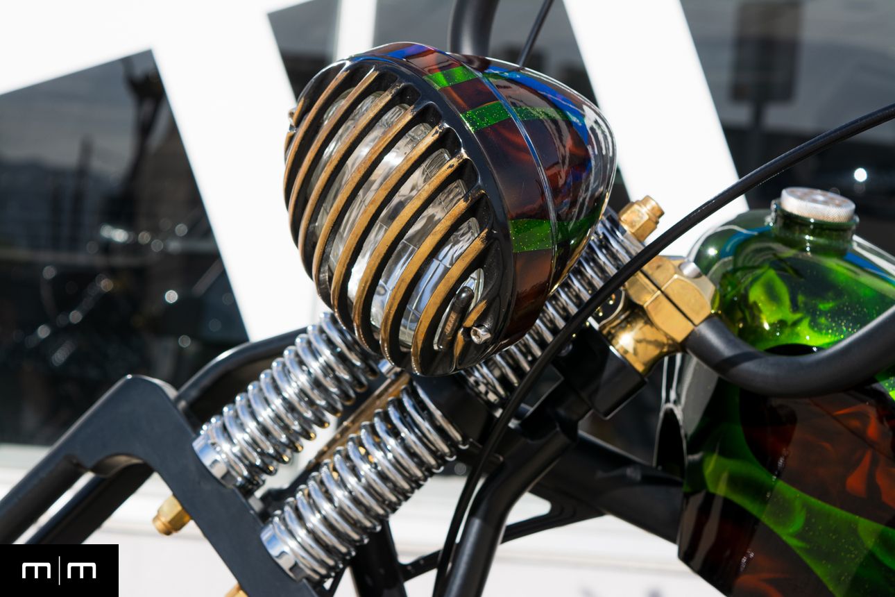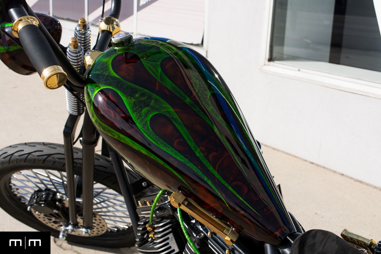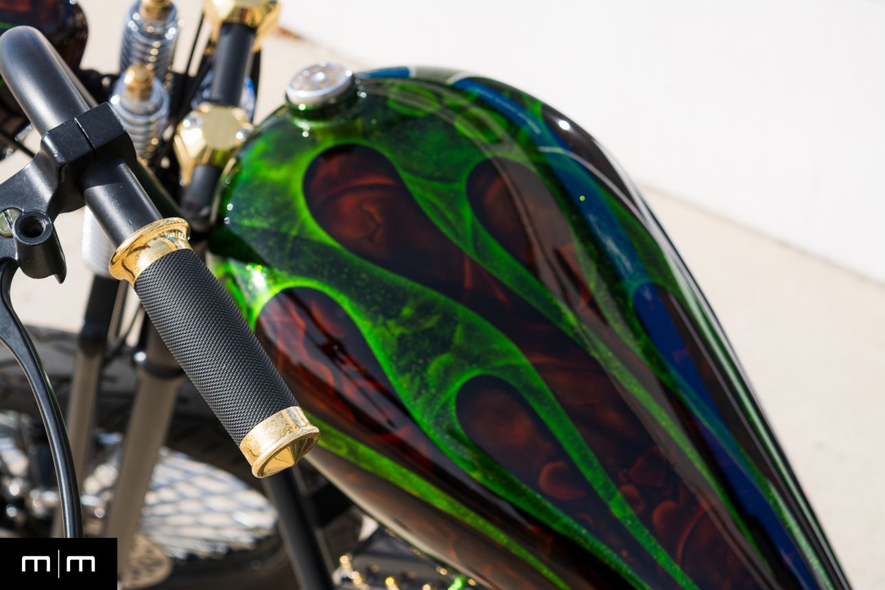 This is a true WCCH VIN and title CFL II, showing just 126 miles since completion, finished in a deep metalflake green over root beer with custom brass and black accents throughout.