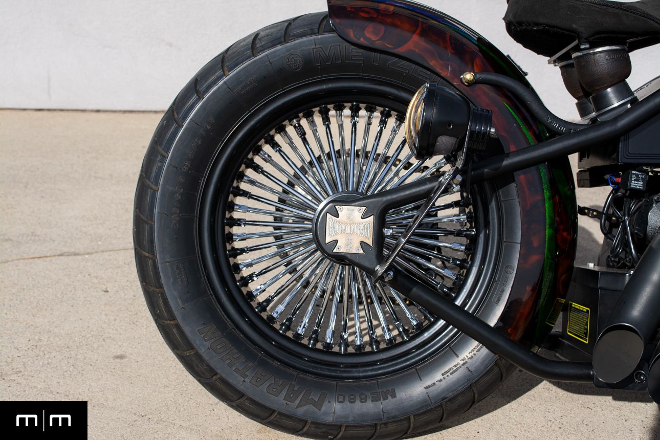 Built on a rigid CFL chassis with a springer front end, the bike has the stance and proportions that made these iconic. The overall execution is clean and consistent — quality paint, matching hardware, and a well-thought-out setup that hasn’t been overbuilt.