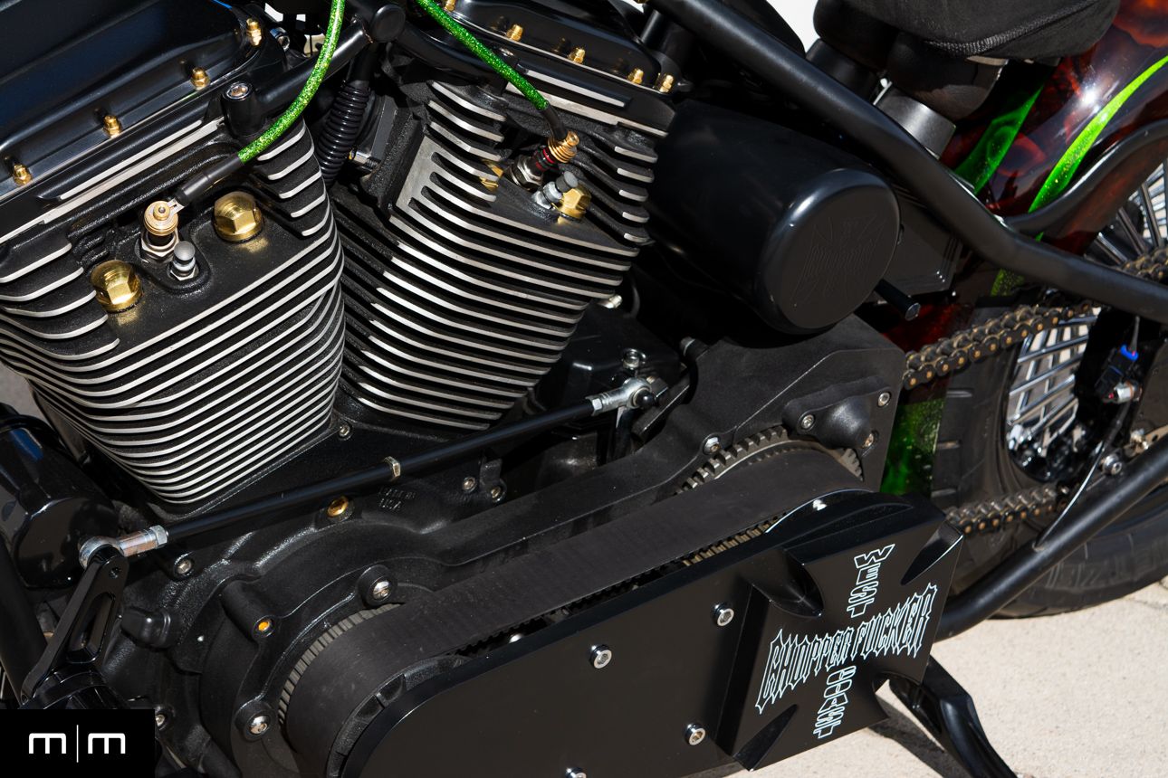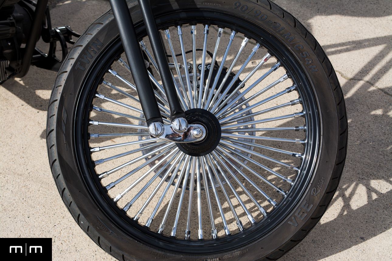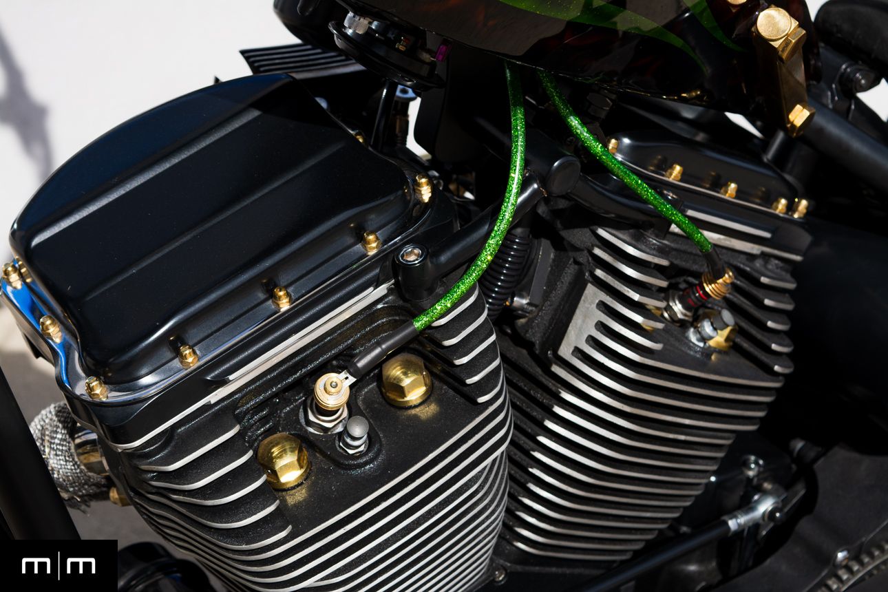 Electric start Open belt primary with WCC cover Chain final drive Air ride solo seat (Goodyear bladder) Antigravity lithium battery Metzeler tires Internal throttle with clean cockpit layout