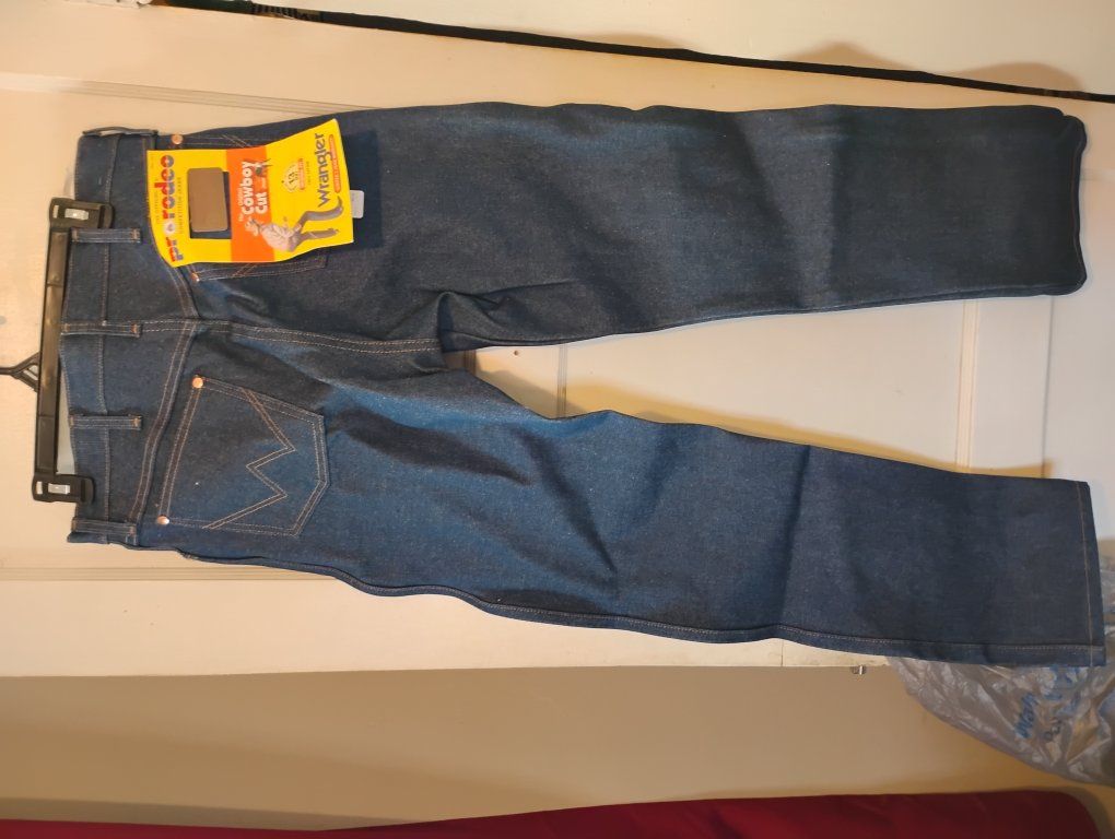 Wrangler Pro Rodeo Men's Jeans brand new, size 32 x 32, competition boot cut. These are somewhat hard to find, cost more than regular Wranglers, and have a fantastic fit and durability for the serious rodeo competitor, or casual weekend rider. Brand new, never worn, tags and labels still attached. Can't find a better deal for only $15! Please call or text. 385-490-6782