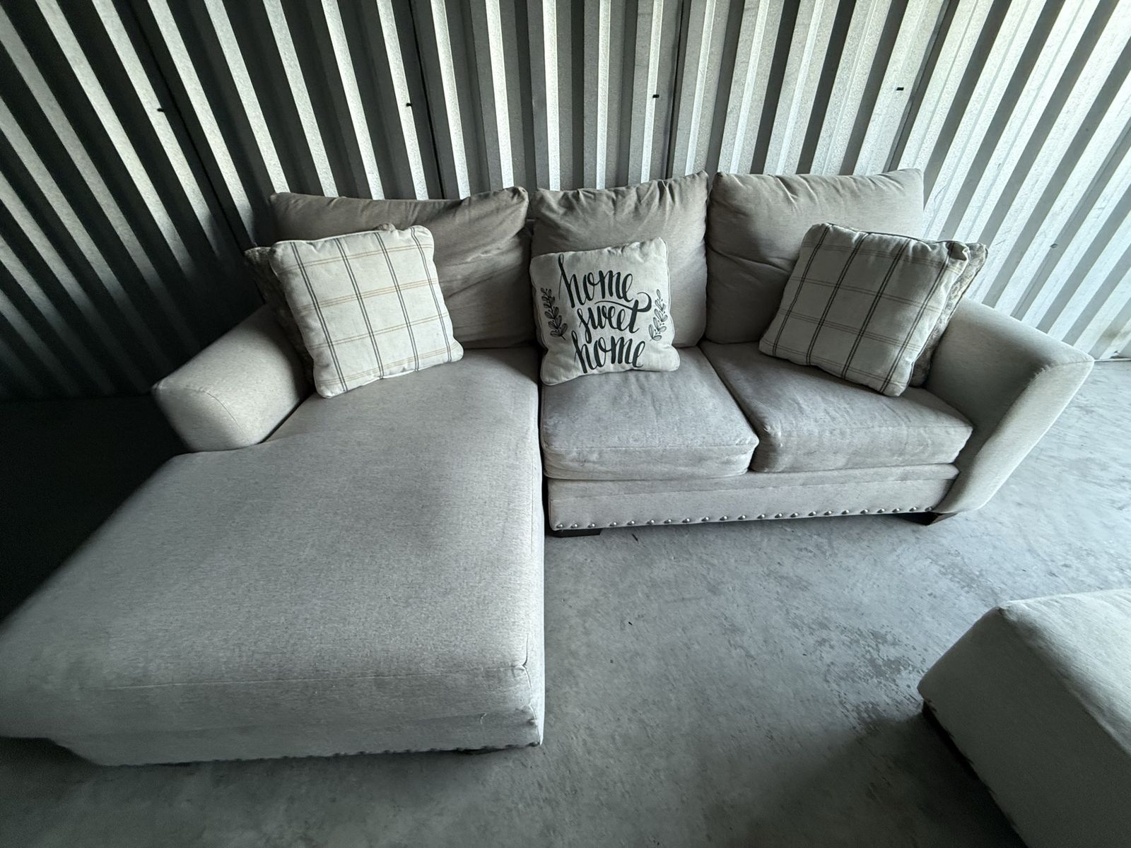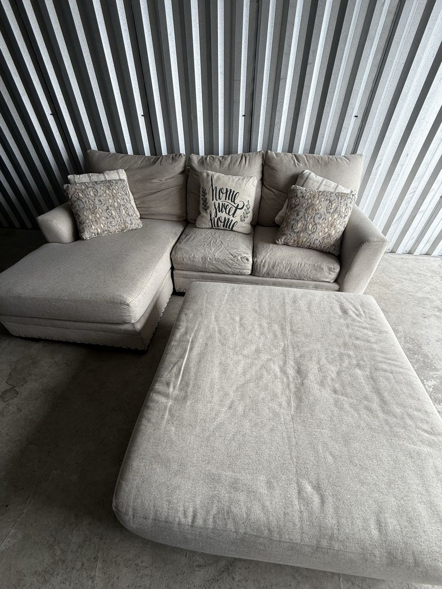 ApplePayComfortable 2 piece sectional and ottoman in great condition! Pet and smoke free. No rips or damage. Feel free to come check it out!